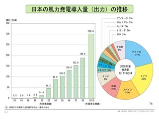 The map showsthe mean wind speed in ms -1 @ 10 m a.g.l. for the period 1976-95, according to the NCEP/NCAR reanalysis data set 出典: http://www.windatlas.dk/World/Index.htm 世界の風の状況 アルゼンチンのパタゴニア地方などは風力発電に適しているとも言われる。