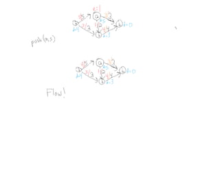 This document summarizes key concepts related to network flows, including maximum flows, minimum cost flows, and multicommodity flows. It provides an example of modeling internet routing as a maximum flow problem. It then describes the Ford-Fulkerson algorithm for finding maximum flows and some of its properties, including that the maximum flow equals the minimum cut. It discusses how the algorithm works by finding augmenting paths in the residual graph and updating the flow. Finally, it analyzes the running time of Ford-Fulkerson and describes how using shortest augmenting paths leads to a polynomial time algorithm.