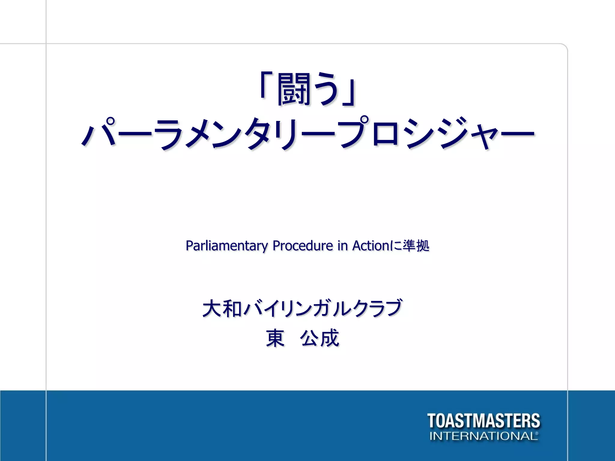 • Parliamentary Procedure(議事進行の手順)