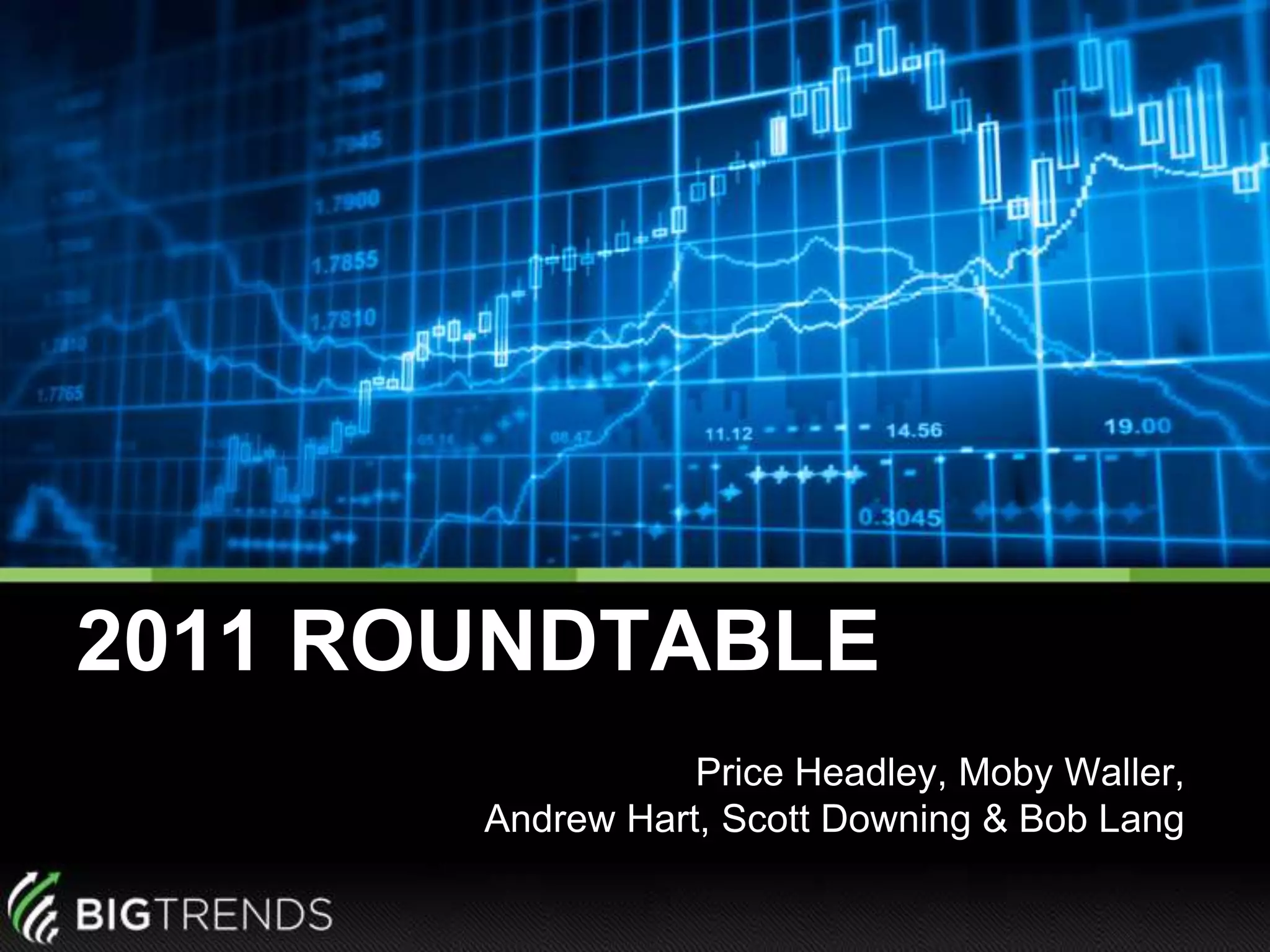 The document outlines predictions and analysis for the financial markets in 2011, emphasizing a bullish outlook for the first half of the year with specific stock and sector recommendations. Key international markets such as India, Brazil, and China are highlighted, alongside expectations for commodity performance to pause. The document also provides insights into volatility trends and strategic investment suggestions based on market indicators.