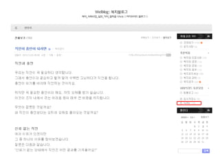 사회사업 글쓰기 20101203 1. 2. 3. 5. 6. 7. 수다는 잘 떨면서왜 글쓰기는 못할까?말 해보라 하면 몇 시간이고 떠들면서글쓰기가 어려운 이유는 무엇일까요? 8. 9. 10. 우아아아악~ 오늘 화나는 일 투성이여여아침부터 일도 자꾸 틀어지고 고객들도 짜증나게 징징거리고맛난점심약속한것도 상대방이 갑자기 펑크내서 못 얻더먹고ㅋㅋ되는 일이 한개도 없네요.그래도 먹고살기 위해 실실 웃으며 네네~ 해야하는내입장ㅠㅠ속에서 열불나 죽는데..에혀....http://cafe.daum.net/qlsemf/TRO/72672?docid=hmpX|TRO|72672|20101118112531&srchid=IIMlDv50400&focusid=A_1739A0374CE48B9B08F34E 11. 12. 19. 20. 21. 22. 23. 24. 25. 26. 우리는 정의라는 본질에 구역질 나는 상실감을 느끼게 된 딱딱해진 가슴을 후벼파며내 자신이 즈려밟고 걸어가야 하는 그 차가운 길에 홀로 외로이 설 수 밖에 없는 사슴의 뿔과 같은 존재이다. 27. 본 기관의 주변 교육기관과의 긴밀한 협조가 어려워 대상자 모집에 어려움이 따랐으나, 주변 교육기관뿐만 아니라 OO시내의 어린이집 및 지역아동센터 등 교육기관에 홍보를 하여 대상자를 모집하였고 차후에는 교육기관에만 대상자 모집 홍보를 한정하는 것이 아닌 노인복지관, 노인복지센터 등 조부모의 접근성이 높은 유관기관에 홍보를 하여 참여하는 대상의 폭을 확대하고자 함. 28. 사회사업 글쓰기?꾸며 쓰는 글도 아니요, 무미건조한 보고 글도 아닙니다.내 생각과 삶을 특히 사회사업하면서 느꼈던 일상과 생각을진솔하게 표현합니다. 29. 30. 31. 32. 33. 첫 번째, 주제 정하기내가 하고 있는 일을 주제로 정하기내가 자신 있고 잘 아는 주제로 정하기나는 알지만 남들은 모르는 주제로 정하기 34. 35. 두 번째, 실천하고 관찰하기주제와 관련된 일을 직접 실천하기실천하며 의미를 하나하나 관찰하기 36. 38. 네 번째, 짧게 메모하기.실천하며 떠오른 생각을 메모하기.책 읽으며 떠오른 생각을 메모하기. 42. 43. 여섯 번째, 글 쓰기소제목을 먼저 구성합니다. 소제목 안의 내용을 구성합니다. 이전에 디지털화한 메모, 읽은 책에 기록된 내용등을 참고하여 글을 씁니다. 45. 일곱 번째, 어디에 쓸까한글 파일로 쓰기.한글 파일에 씁니다. 이것이 기본이라 봅니다. 개인적으로 쓰는 방식입니다.피드백은 거의 없습니다. 46. 블로그 및 홈페이지에 쓰기.어느 곳에서나 인터넷에 접속할 수 있으면 쓸 수 있는 장점. 꾸준히 활용하면 신뢰할만한 피드백도 기대할 수 있음. 맥락을 유지하면서 쓰기 어려울 수 있음.일곱 번째, 어디에 쓸까 49. 광장 게시판에 쓰기.사람들이 이미 많이 모여 있는 게시판에 글을 올릴 수 있습니다.폭 넓은 피드백도 많이 받을 수 있음. 익명성이 높아 원치 않는 비난, 욕설 등도 받을 수 있음. 일곱 번째, 어디에 쓸까 51. 모두를 다 활용할 수도 있음.광장게시판 + 블로그= 한글파일 등등서로 연결, 조언일곱 번째, 어디에 쓸까 52. 53. 생각 정리되면 써야지?생각이 완성되면 쓴다?생각이 완성되고 글 쓰려 하면평생 한 권도 못 낸다. 지금상황에서 내 생각일 뿐이라는 한계를 정하면 쉽게 쓸 수 있다.