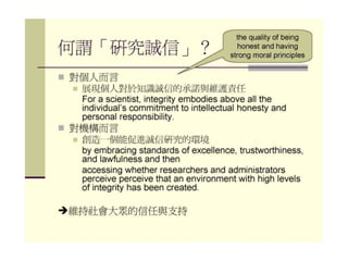 2011年9月20日 成大社會與行為科學研究倫理講習 -- 「人類行為研究倫理與人體研究倫理治理架構建置計畫」 by陸偉明老師 PPTX