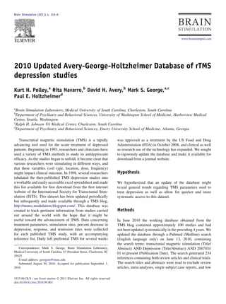 1) Researchers have compiled a database tracking transcranial magnetic stimulation (TMS) studies for treating depression. It includes variables like coil type, location, dose and frequency.