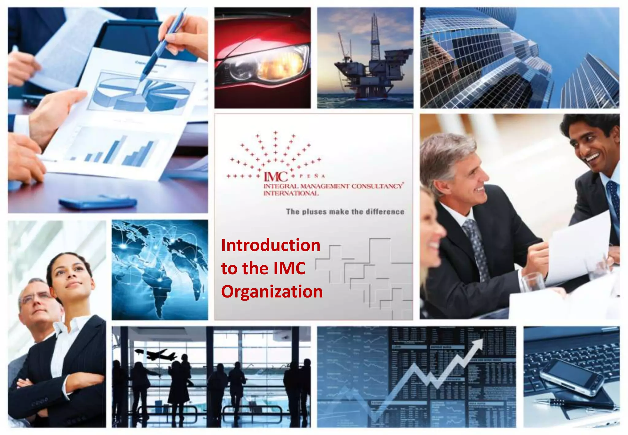 The document provides an overview of IMC, an international management consultancy firm. IMC was founded in Switzerland in 2004 and has since expanded globally. It offers services across five key business lines: mergers and acquisitions, management consultancy, interim management, human capital management, and executive search. IMC prides itself on its flexible organization, high ethical standards, and ability to leverage the expertise of its partners worldwide to deliver measurable results and value to clients in a variety of industries and sectors.