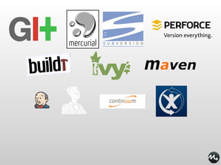2. It recommends several DevOps tools for infrastructure automation including Puppet, Vagrant, and VeeWee which allow developers to define infrastructure in code and provision environments.