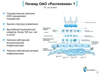 Документ описывает инфраструктуру электронного правительства в России, созданную при участии ОАО 'Ростелеком'. Основные достижения включают разработку ключевых компонентов, таких как единый портал госуслуг и система межведомственного электронного взаимодействия, а также статистику использования этих услуг. Ожидается дальнейшее развитие облачных сервисов и упрощение доступа граждан к госуслугам в электронном виде.