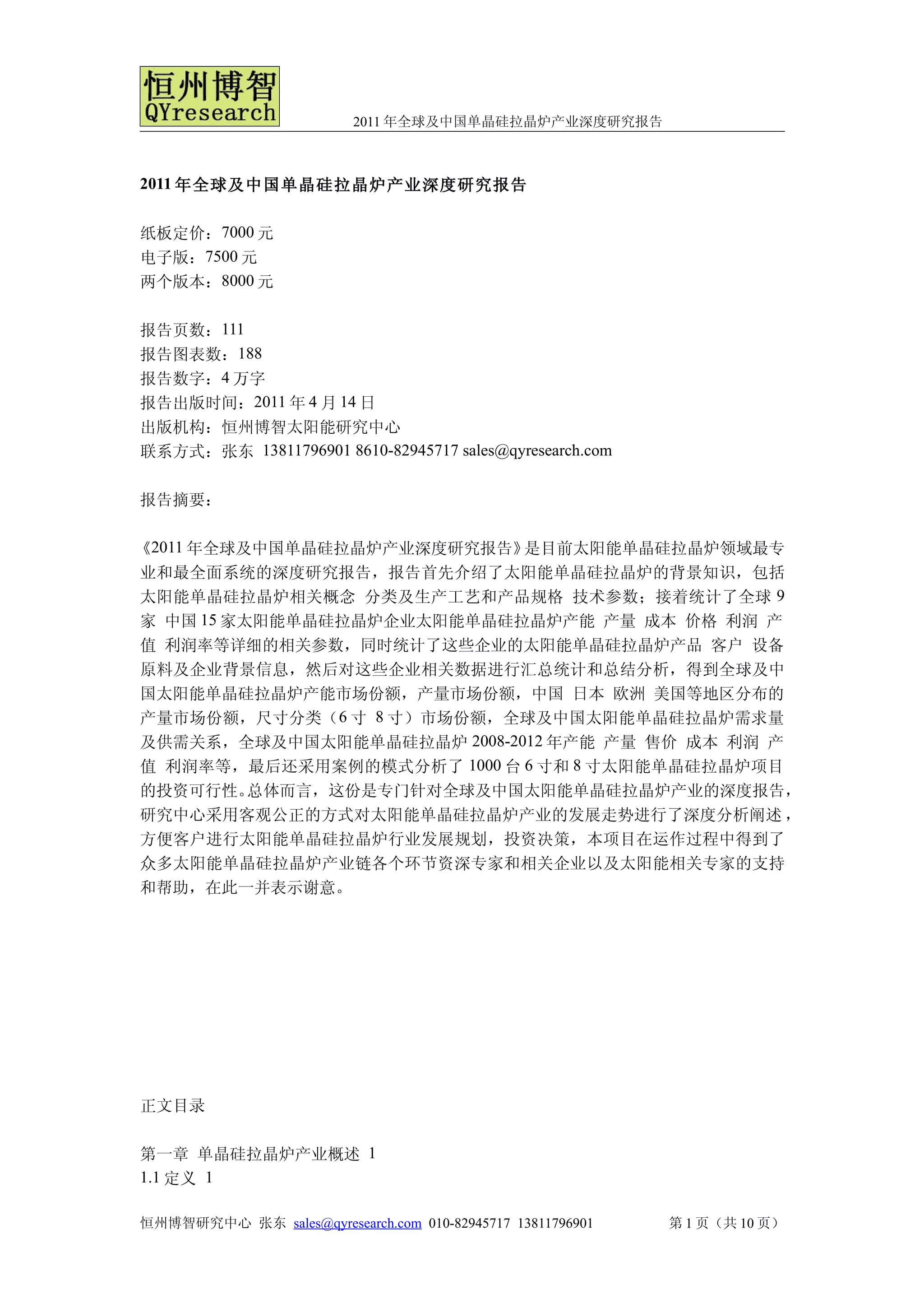 《2011 年全球及中国单晶硅拉晶炉产业深度研究报告》系统性分析了单晶硅拉晶炉行业,涵盖全球及中国市场的企业数据、产能、成本和利润分析。报告通过对主要企业的调查,提供了市场份额、供需关系及未来发展预测。此报告为投资决策和行业规划提供了重要的数据支持和可行性分析。
