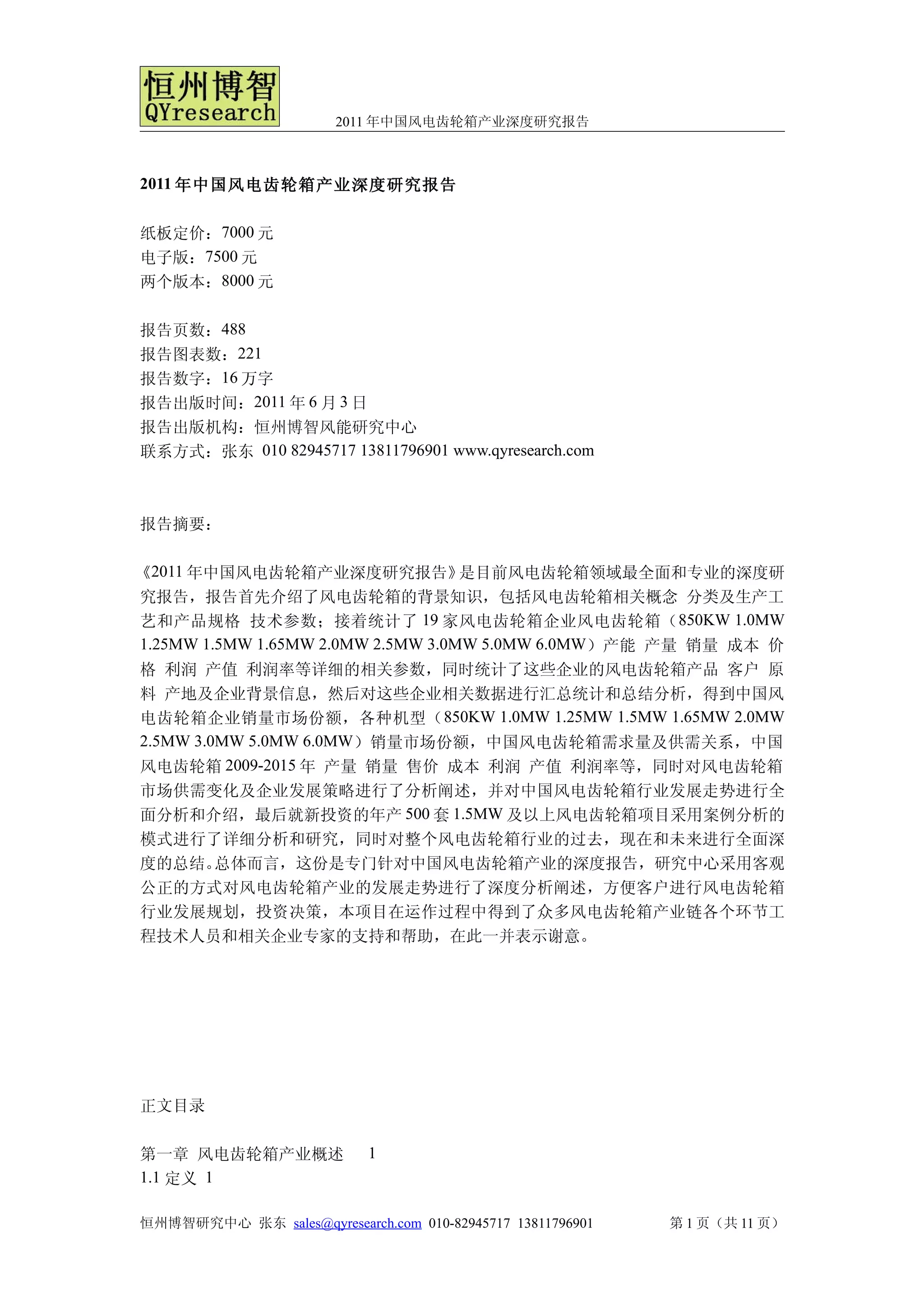 《2011 年中国风电齿轮箱产业深度研究报告》提供了中国风电齿轮箱产业的全面分析,包括市场供需、主要企业和产品特性。该报告统计了多家企业的产能、销量、利润等关键数据,并分析了行业发展趋势。报告旨在为客户提供风电齿轮箱行业的发展规划和投资决策支持。