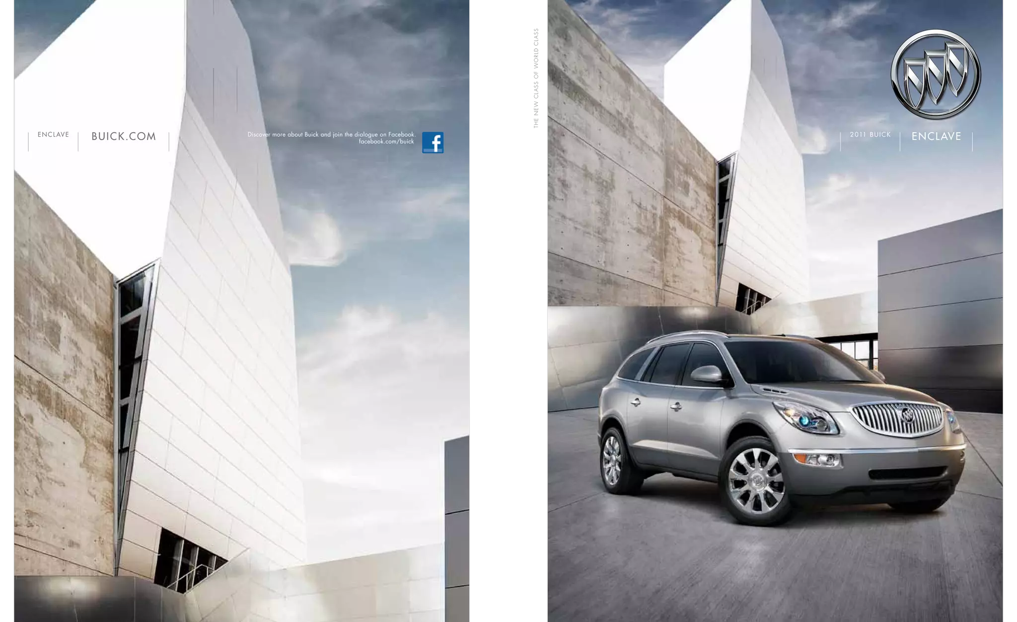 The 2011 Buick Enclave is marketed as a world-class crossover with a focus on style, space, and technology. It features three rows of first-class seating, an advanced navigation system, and a refined safety approach, including intelligent all-wheel drive. With its premium interior design and superior performance capabilities, the Enclave caters to both luxury and practicality in family transportation.