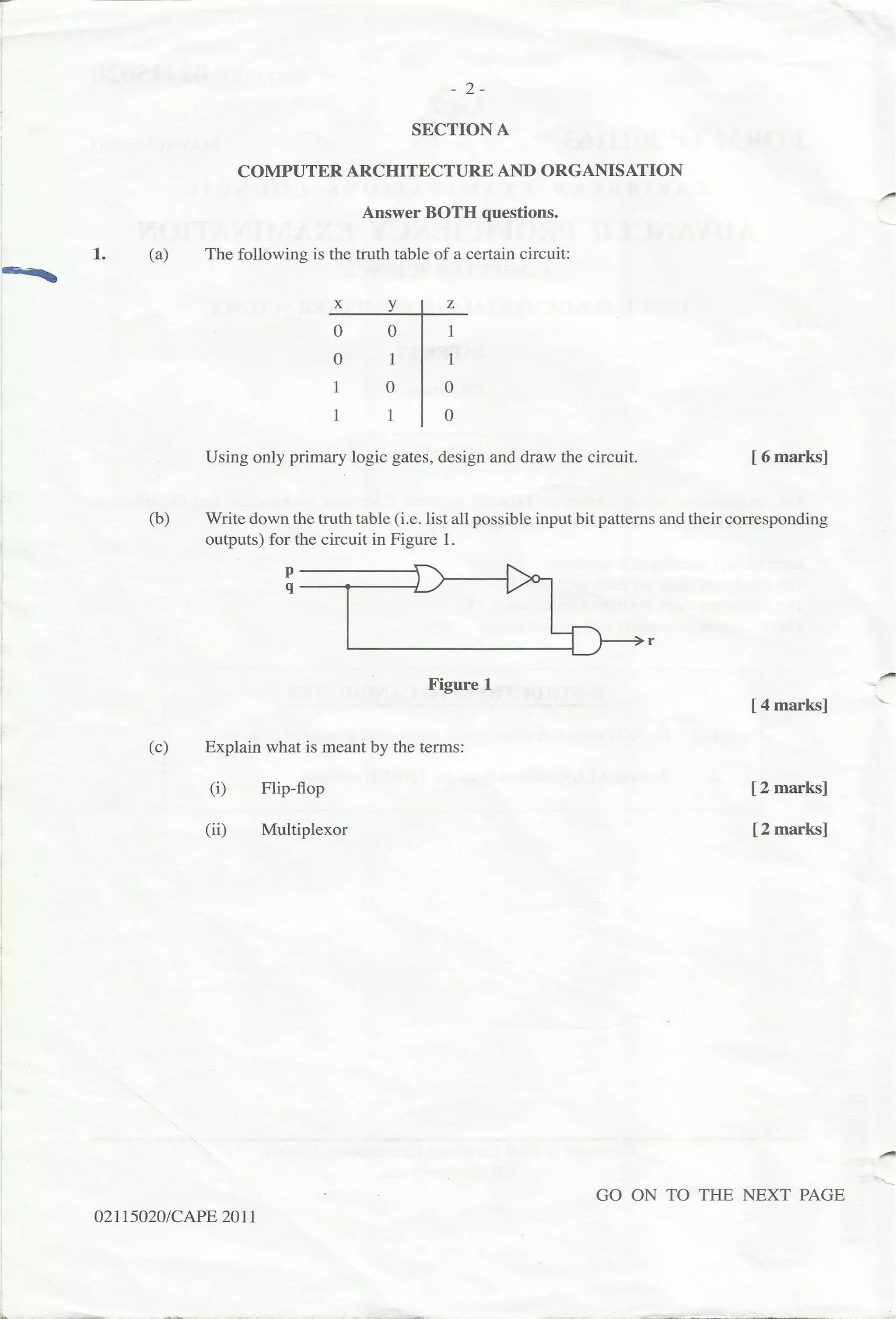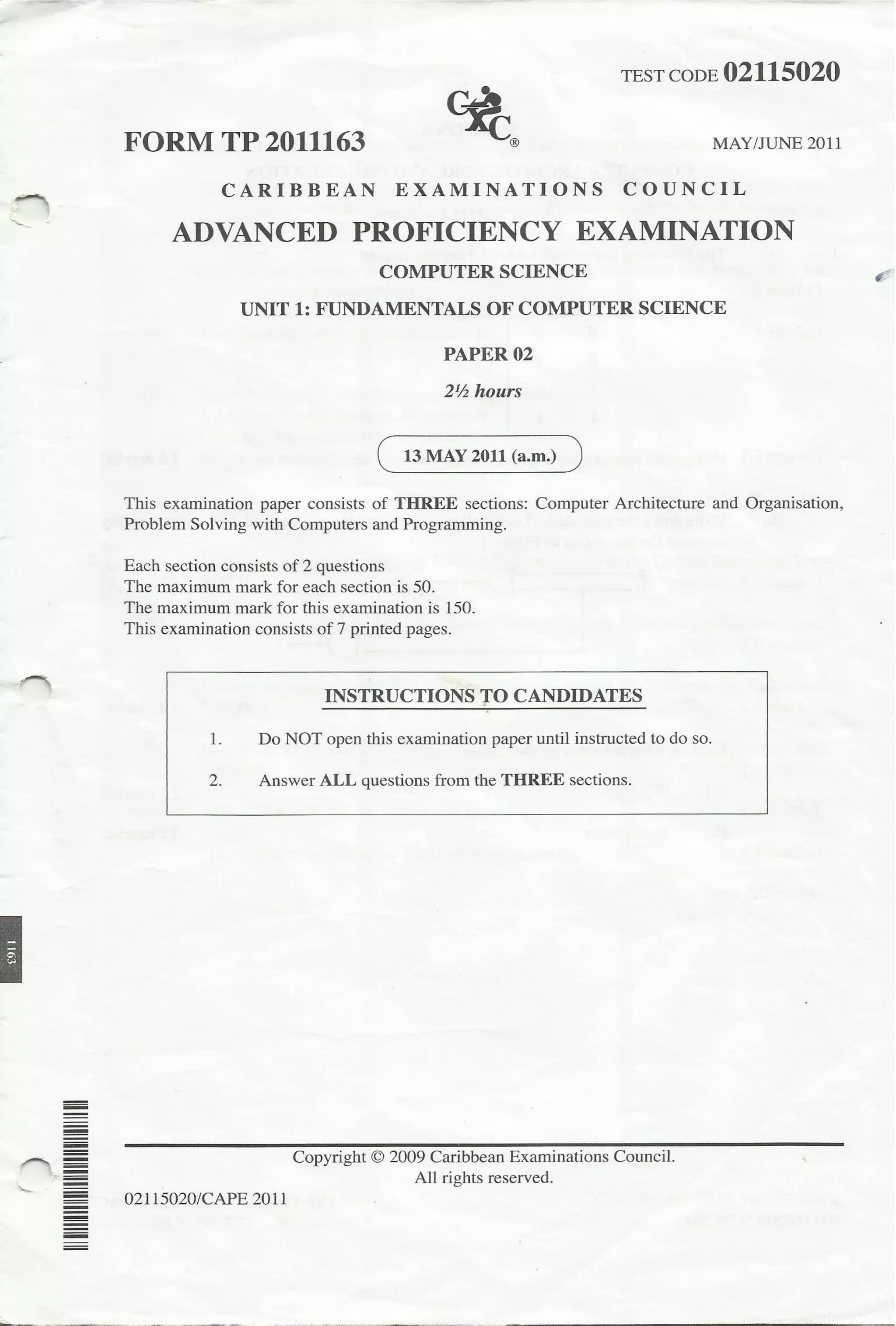 2011 CAPE Computer Science Unit 1 Paper 02 - Past Paper