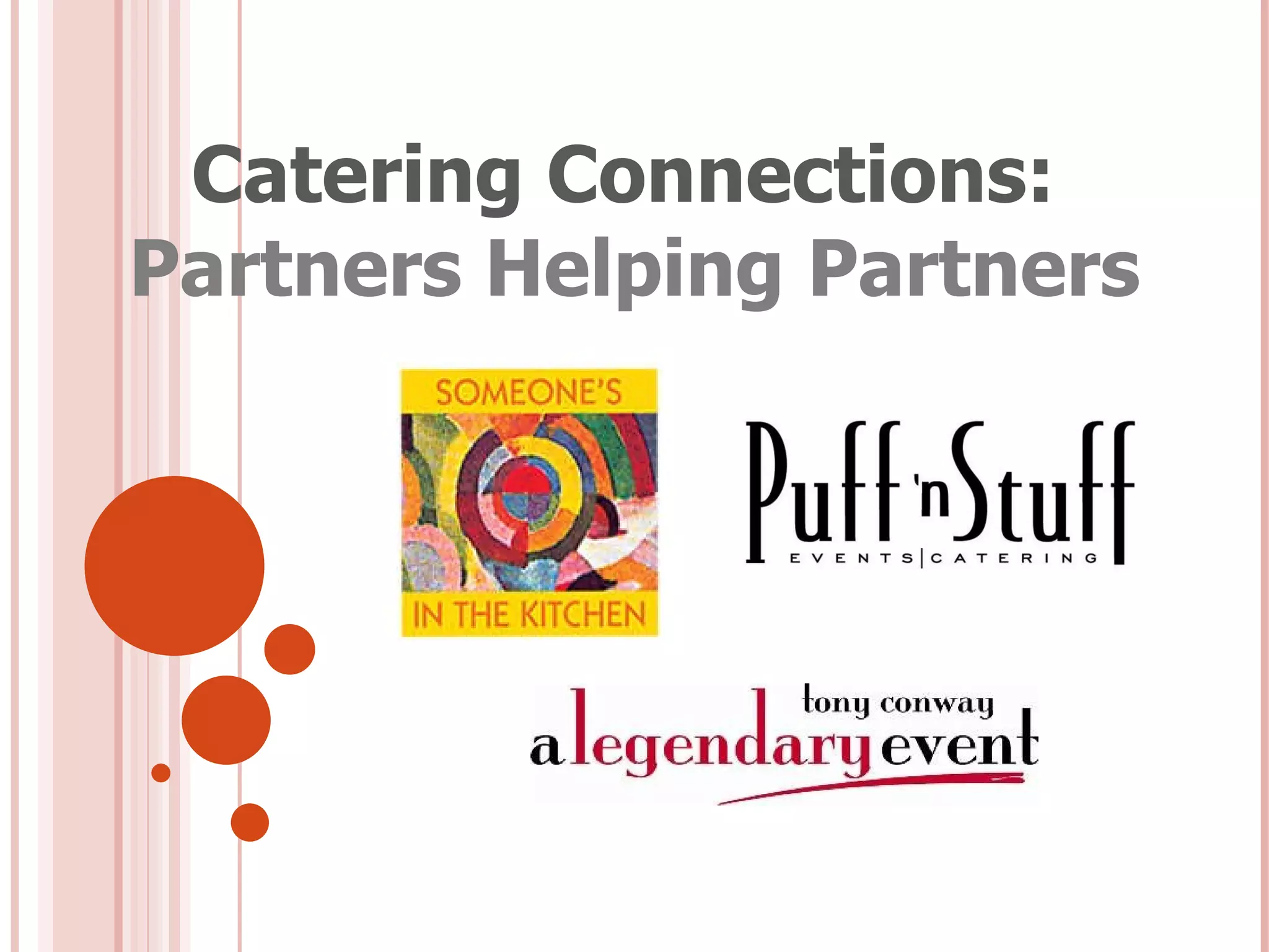 Catering Connections works with vendors to provide catering, decor, and floral services for events. They require reliable vendors that can work evenings, weekends, and after hours to deal with issues that arise. Catering Connections promises their clients excellent service, food, and products, which relies on successfully partnering with vendors to supply items like bars, stage sets, decor, tables, chairs, glassware, plates, furniture, lighting, and serving pieces. They acknowledge that their vendor partners are essential to delivering the high quality experience promised to their clients.