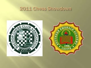 The document contains the roster and results of a 2011 chess tournament. It lists the president, vice president, director, secretary, treasurer, auditor, property custodian, peace and order officers, and advisers of the tournament organization. It also includes a list of participants and the results of matches between participants shown as player 1 vs player 2 with a score.