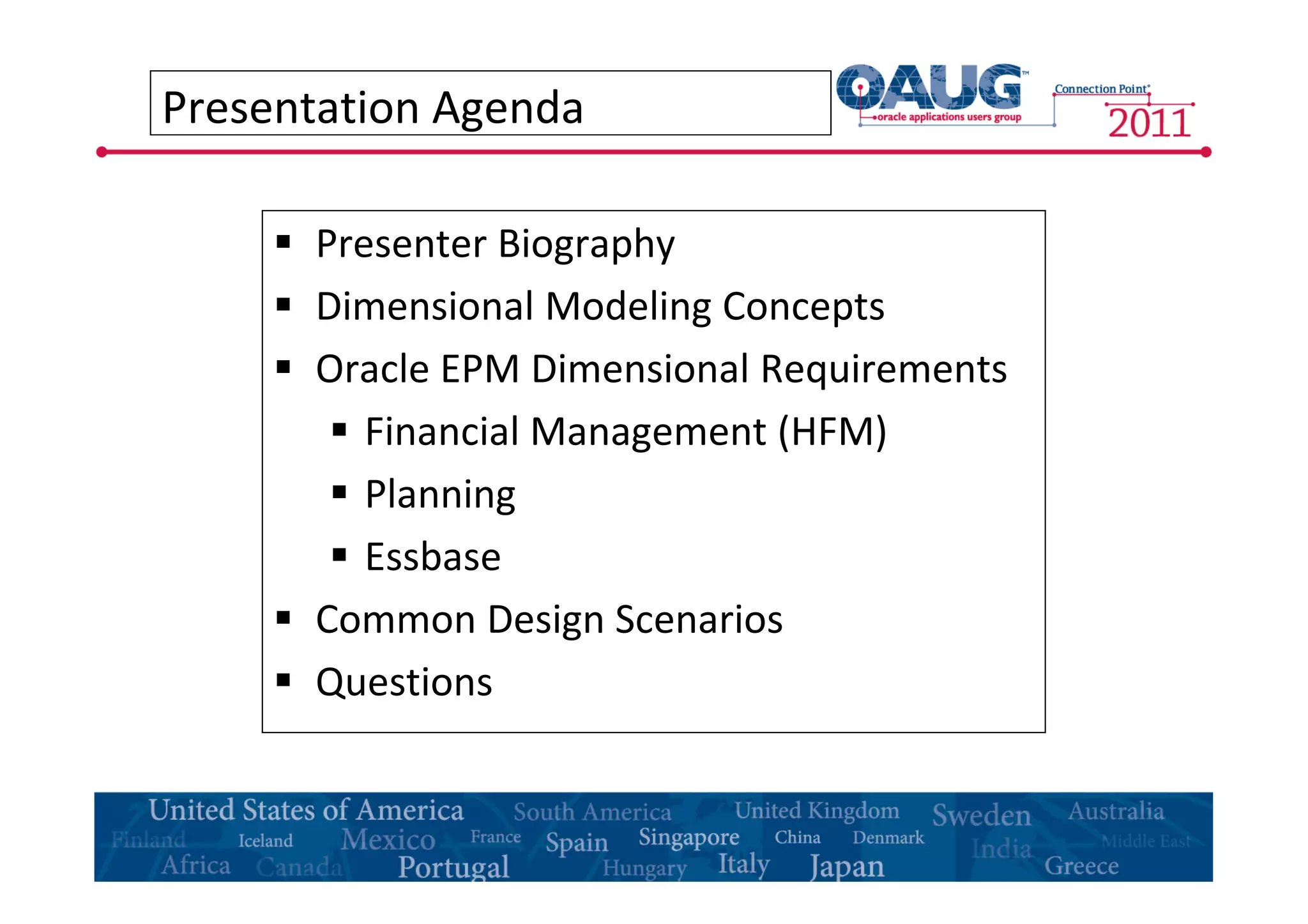 The document provides a comprehensive guide on defining dimensions for Oracle EPM solutions, highlighting the importance of dimensional modeling and best practices for designing dimensions. It covers various types of dimensions, including standard and custom dimensions, and discusses their requirements across different Oracle EPM applications, such as Hyperion Financial Management and Planning. Additionally, it outlines common design scenarios and considerations for effective implementation to improve reporting and data management.