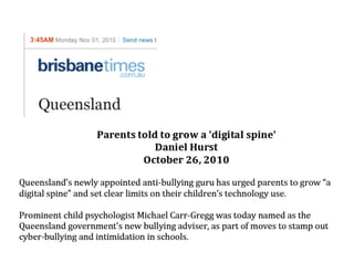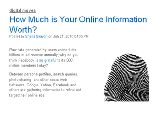 The document discusses high-risk behaviors related to social networking, particularly on Facebook, emphasizing the importance of privacy and the potential dangers of online communication. It encourages parents to stay informed and communicate with their children about setting rules for social media use. Additionally, it highlights the long-lasting impact of digital footprints, where careless actions can become easily searchable.