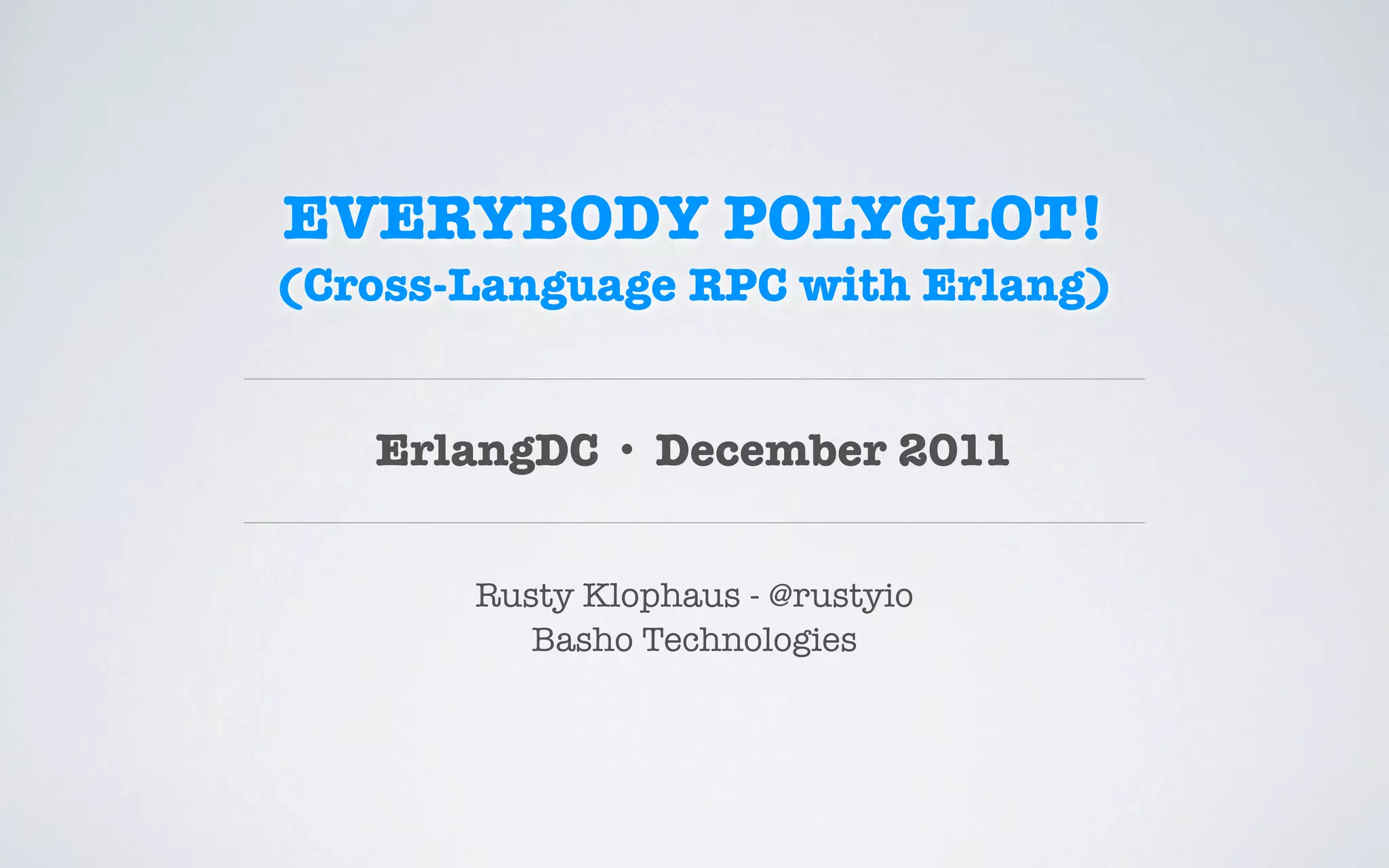 6 @rustyio](https://image.slidesharecdn.com/2011-erlangdc-rustyklophaus-111203213117-phpapp01/75/Everybody-Polyglot-Cross-Language-RPC-with-Erlang-6-2048.jpg)