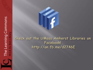 The document provides announcements from the Learning Commons at UMass Amherst between January 4-8, 2011. It highlights new and expanded services at the Circulation/Reserves desk, study abroad advising, streaming video collections, exhibits, the addition of the Office of Undergraduate Research and Scholarship as a new service provider, parking validation, the library's social media presence, printing services, research guides, technology support, reference assistance, writing center, academic advising, tutoring services, quiet study areas, and copyright information.
