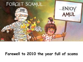 The document summarizes major national and international events that occurred throughout 2011, including India winning the Cricket World Cup, the royal wedding in London, the capture of terrorists, political elections in India, controversies over various bills and policies, and the deaths of prominent figures like Steve Jobs and actors.