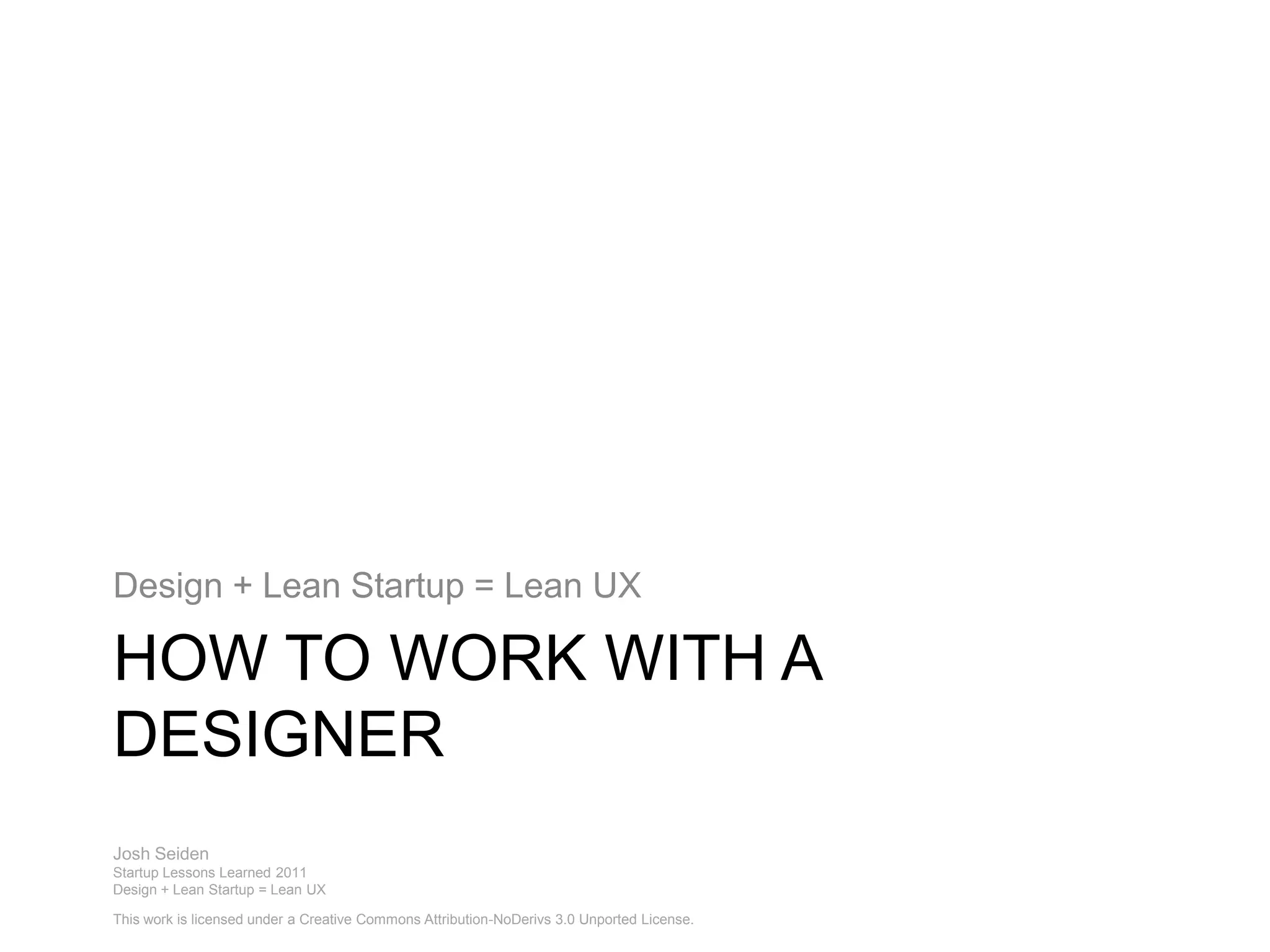 The document discusses how designers at Liquidnet worked to design an investment research management application. The designers' first task was to understand how portfolio managers think about and value investment research. Through field research, the designers discovered that portfolio managers value access to management more than the type of research an application could provide. When the designers brought this insight back, no one believed them. The solution was to bring strategists into the field as well, who then saw for themselves. This led the team to pivot their application to focus on delivering management access services by targeting the whole ecosystem.