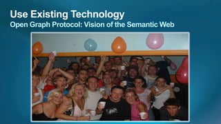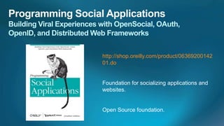The document discusses the framework for building social applications and websites using open-source technologies like WebFinger and Portable Contacts. It emphasizes user identity management, content verification, and methods to enhance product reach through opt-in and opt-out models. Additionally, it includes technical references and links to various identity and social graph APIs.