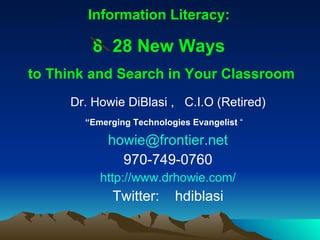 This document provides information about an upcoming webinar presented by Dr. Howie DiBlasi on using Google search in the classroom. It includes details like the date, time, and link to register. It also provides tips for effective Google searches, such as using advanced search features and evaluating website credibility. Examples are given of different search queries and evaluating websites based on authorship, purpose, and other criteria.
