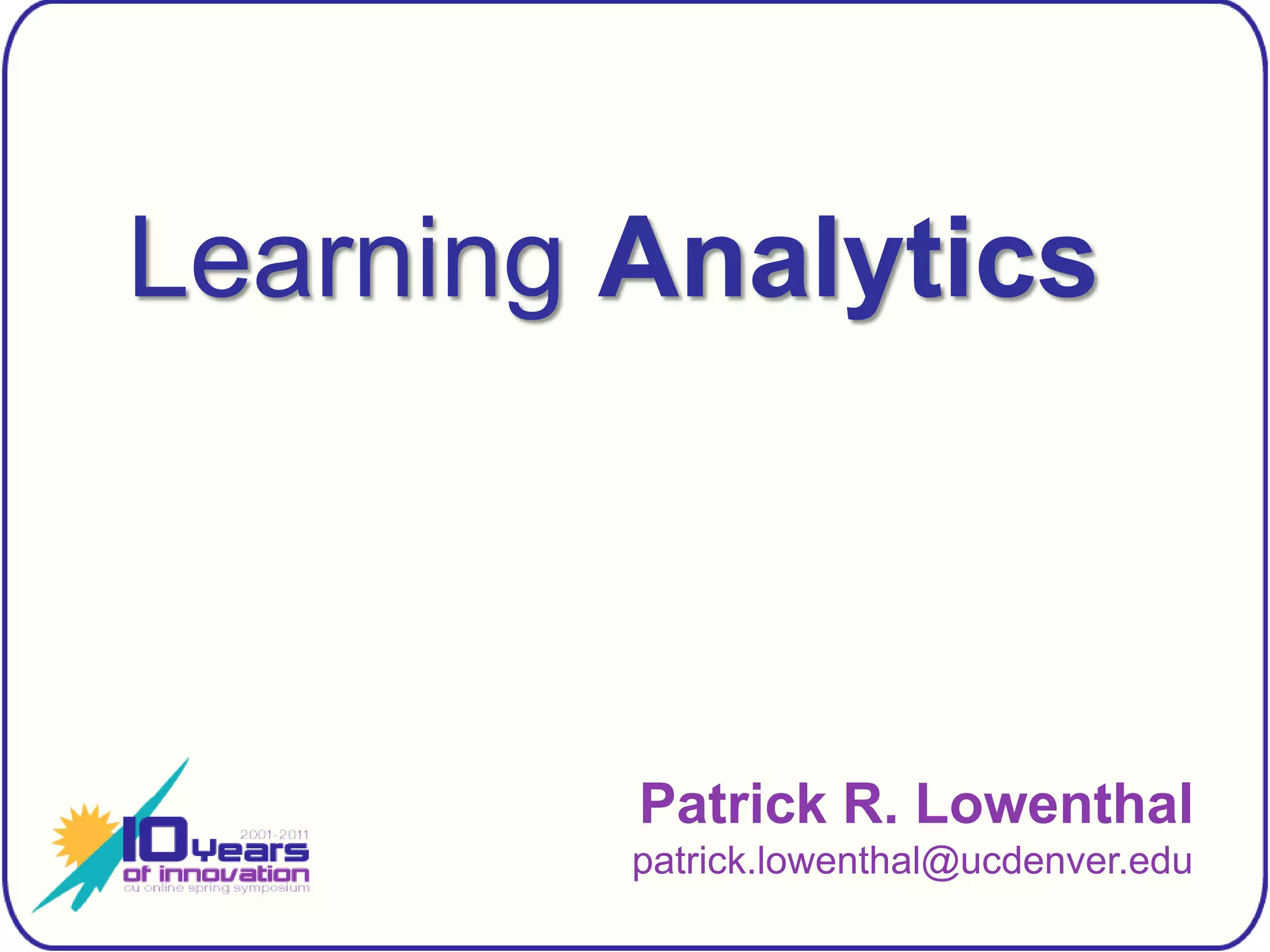 The document discusses learning analytics, which is defined as the measurement, collection, analysis and reporting of data about learners and their contexts in order to understand and optimize the learning process. It explains that learning analytics can be used to collect data from learning management systems or other sources to gain insights into student engagement, performance and progress with the goal of improving teaching and learning. The document also provides reasons to use learning analytics such as improving teaching, student learning, and course evaluations, as well as examples of how different institutions have implemented learning analytics.