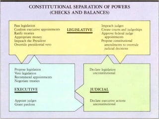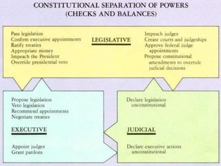 The United States Constitution was drafted at the Constitutional Convention in Philadelphia in 1787. Delegates debated plans for the new government, with James Madison's Virginia Plan proposing a strong federal government prevailing over the New Jersey Plan. The Great Compromise merged the two, creating a bicameral Congress. After ratification, the new government established three branches of power and a system of checks and balances to limit any one branch from becoming too powerful.
