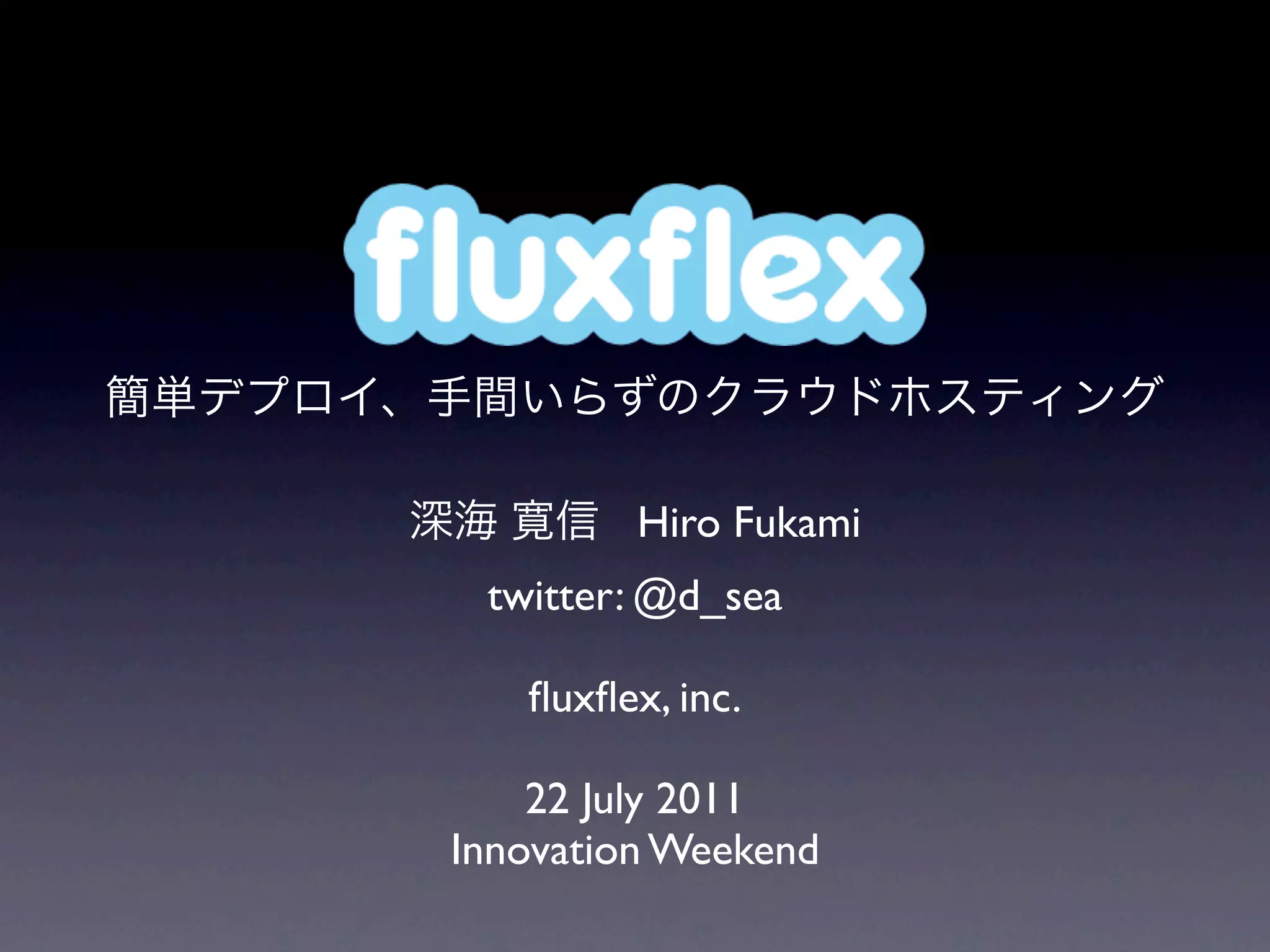 The document discusses fluxflex, a cloud hosting service founded in 2010 that allows simple deployment of applications without server management. It offers free and paid plans starting at $1/month. The service aims to simplify deploying applications using infrastructure as a service (IaaS) models. It allows importing code from GitHub and integrating with social networks like Twitter and Facebook. The founder demonstrates how fluxflex can be used to deploy a WordPress site and tweets directly from an application deployed on the platform. Charts show the growth of IaaS, PaaS, and SaaS markets from 2008-2013.