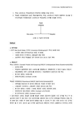 1. 학업 스트레스는 학업성취도에 부정적인 영향을 미칠 것이다.
