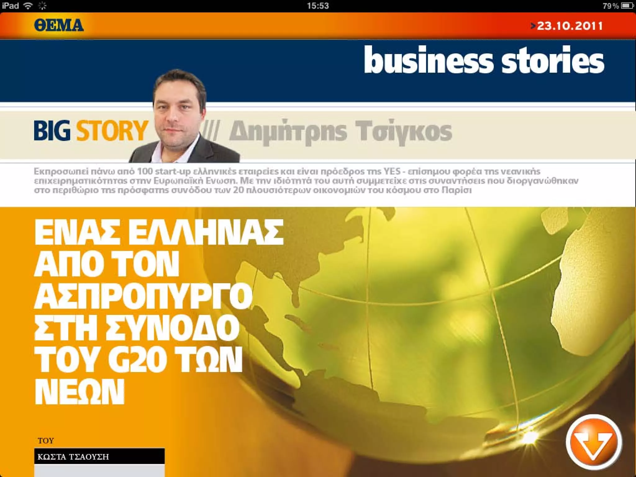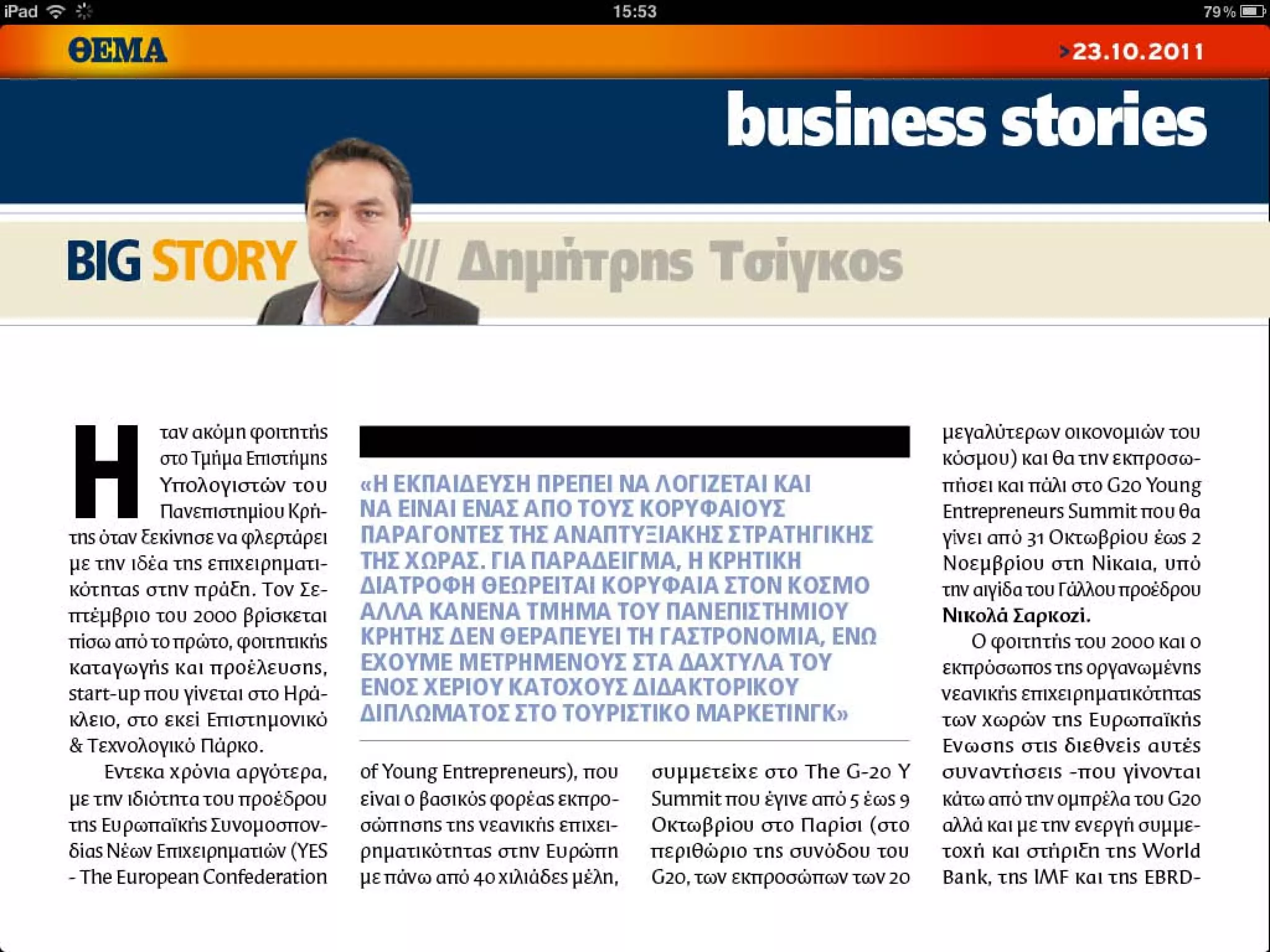 A publication of the leading Greek newspaper "Proto Thema" on Dimitris Tsigos participation to G20Y and G20YES conferences, representing the young entrepreneurs of Europe