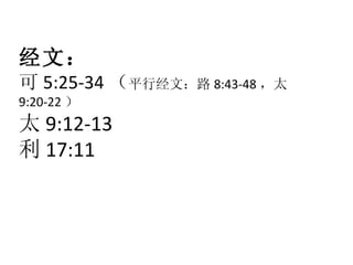 ( 平行经文:路 8:43-48 ,太 9:20-22 ) 太 9:12-13 利 17:11