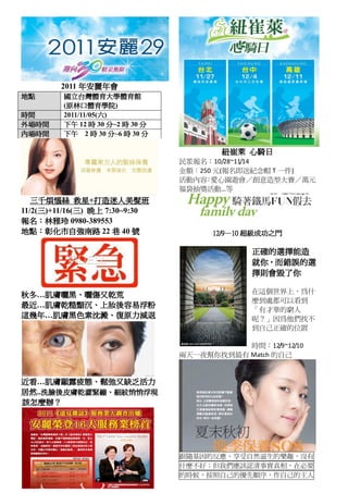 该文档包含关于安利的活动信息、特惠介绍、家庭清洁产品上市,以及多个健康和美容活动的详细安排。它还探讨了育儿观念和成功的诀窍,强调了成功与传承的重要性,以及大豆对健康的益处和当下的饮食趋势。文中提到的活动时间和地点清晰,适合关注健康、时尚和事业发展的人士。