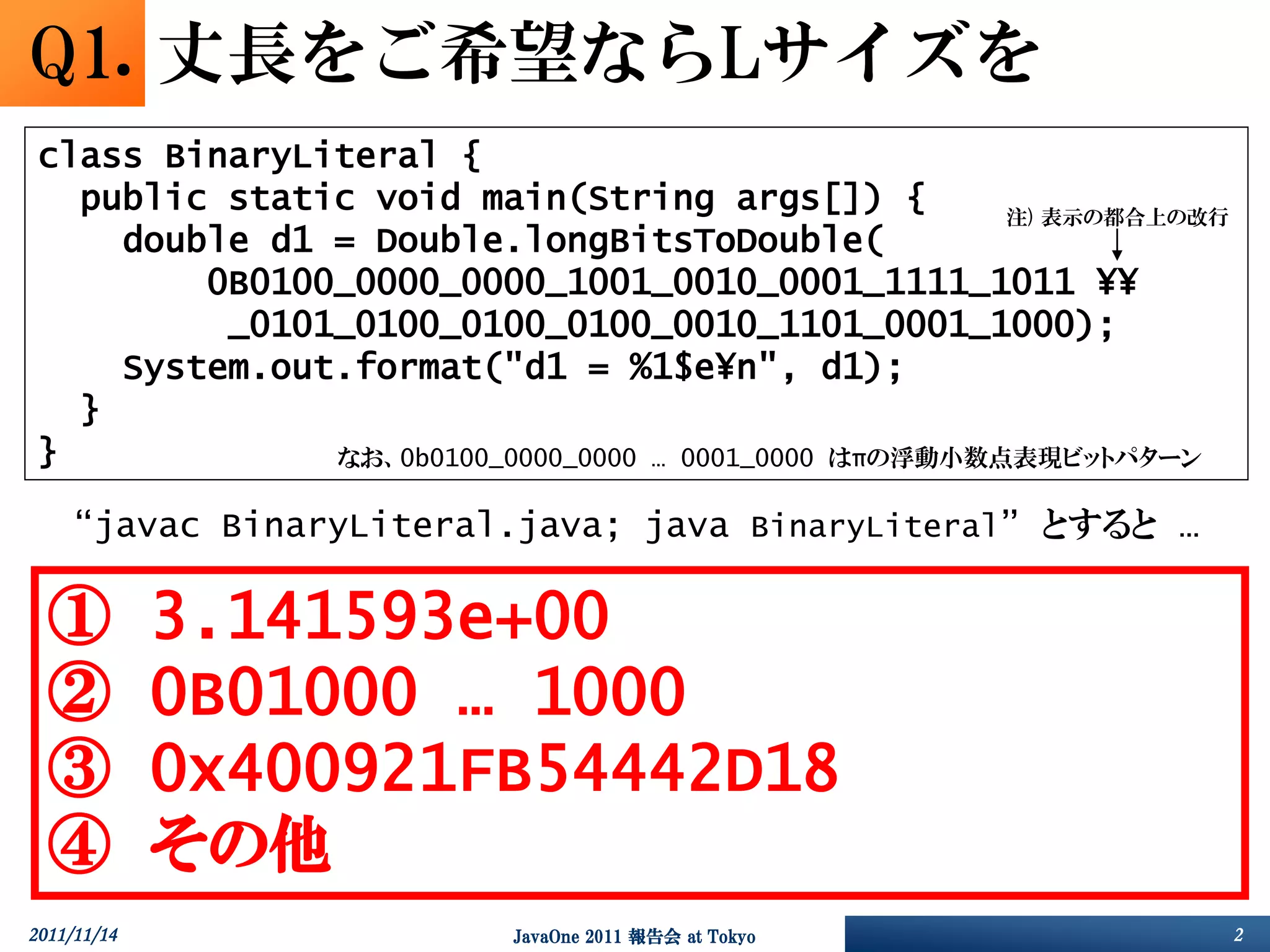 “javac BinaryLiteral.java; java BinaryLiteral” とすると …
