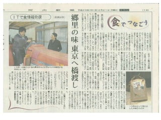 グ・ツイッター・Youtube) を活用してお米を売る。 • 「顔の見える生産者・顔の見 える消費者」 • 新しい販路・新しいコミュニ ケーション • ISDNしかない地域。 • 0から学生が作成。農家との ネットワークも一から。 • 10月7日から販売開始。 • http://torao.jp/ フォロー・購入を お願いします!
