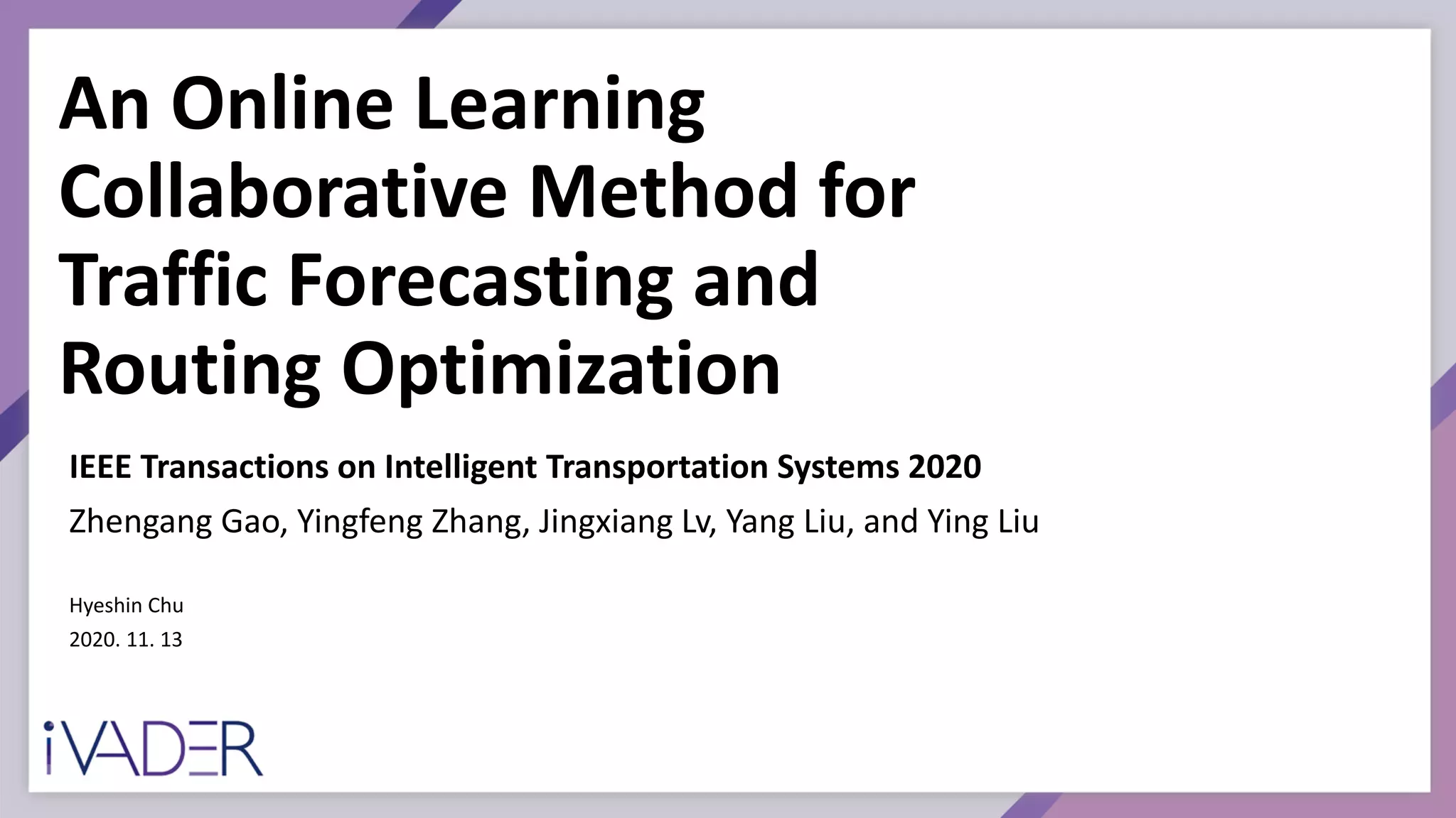 This paper proposes an online learning collaborative method for traffic forecasting and routing optimization. It designs a system architecture that integrates traffic and vehicle data using technologies like IoT, cloud computing, and cyber-physical systems. An online learning data-driven model is constructed using model learning and parameter learning to extract knowledge from historical and real-time data. This model and a collaborative optimization mechanism enhance coordination between road segments and vehicles by combining short-term forecasting and routing optimization. A case study of this method in Xi'an City shows it can effectively reduce travel time compared to other methods.