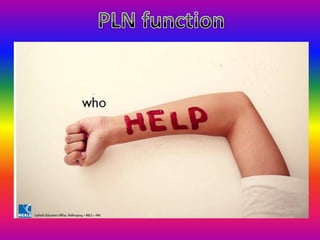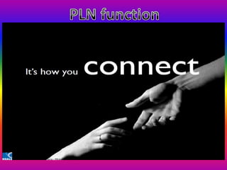 This document discusses personal learning environments (PLEs) and personal learning networks (PLNs). It defines PLEs as learner-centered systems connected to external online services that allow individuals to manage information, generate content, and connect with others. PLNs are described as relationships and connections among peers and knowledge. The document outlines functions of PLEs like managing information, generating content, connecting with others, communication, sharing, and recording achievement. It also presents a model for building a PLE and developing a PLN.