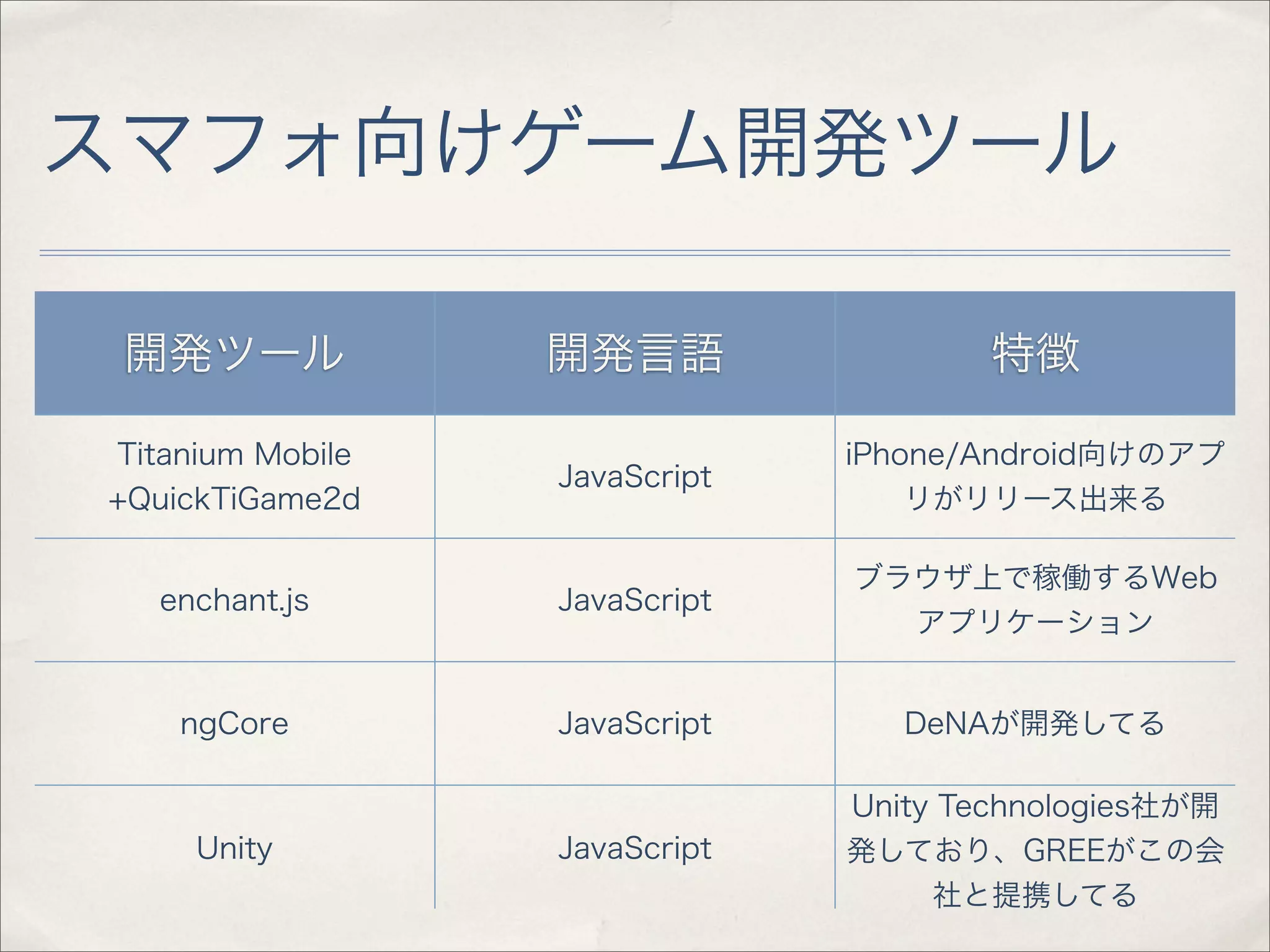 スマフォ向けゲーム開発ツール