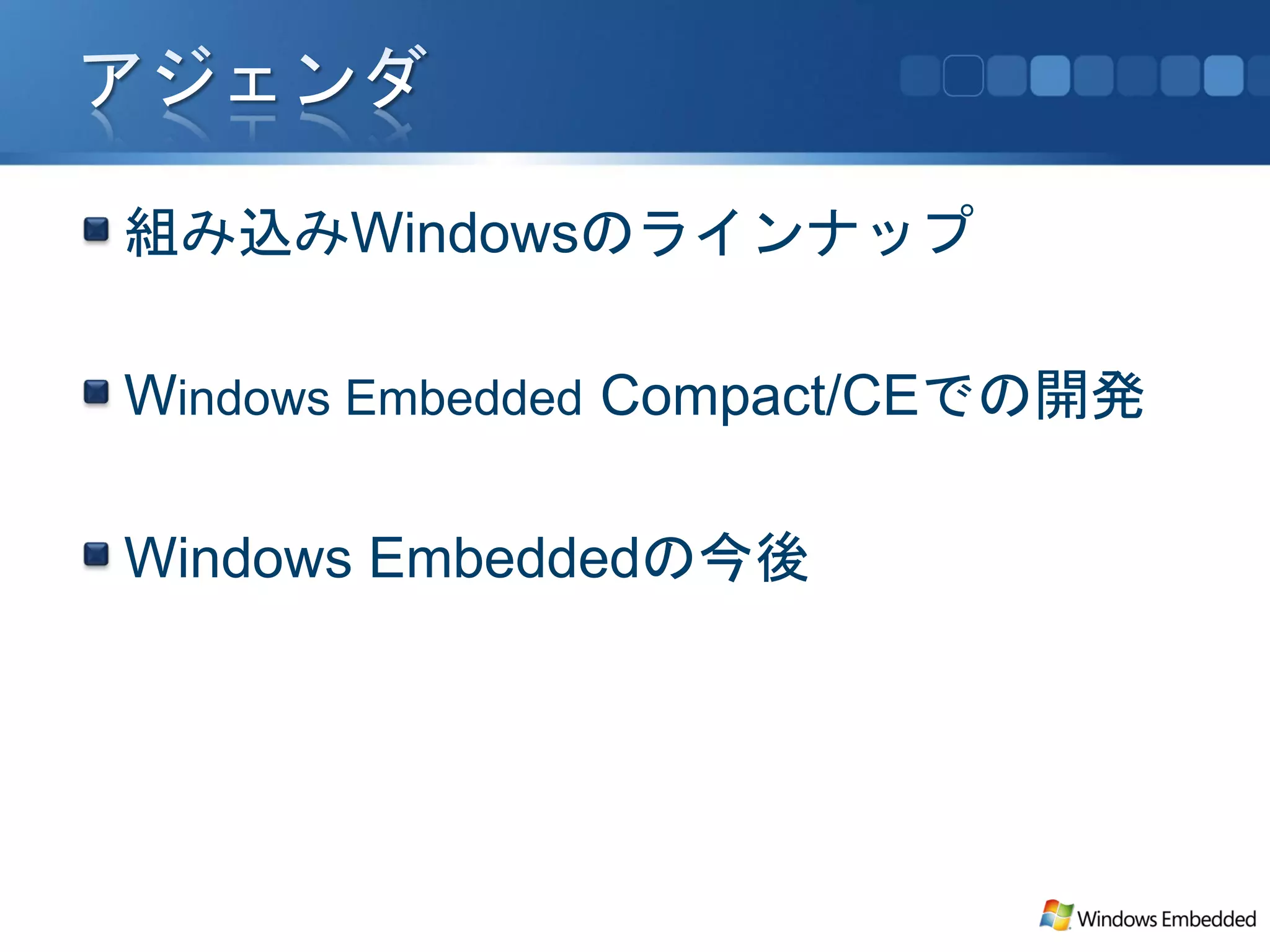 Windows Embedded の最新ラインナップ