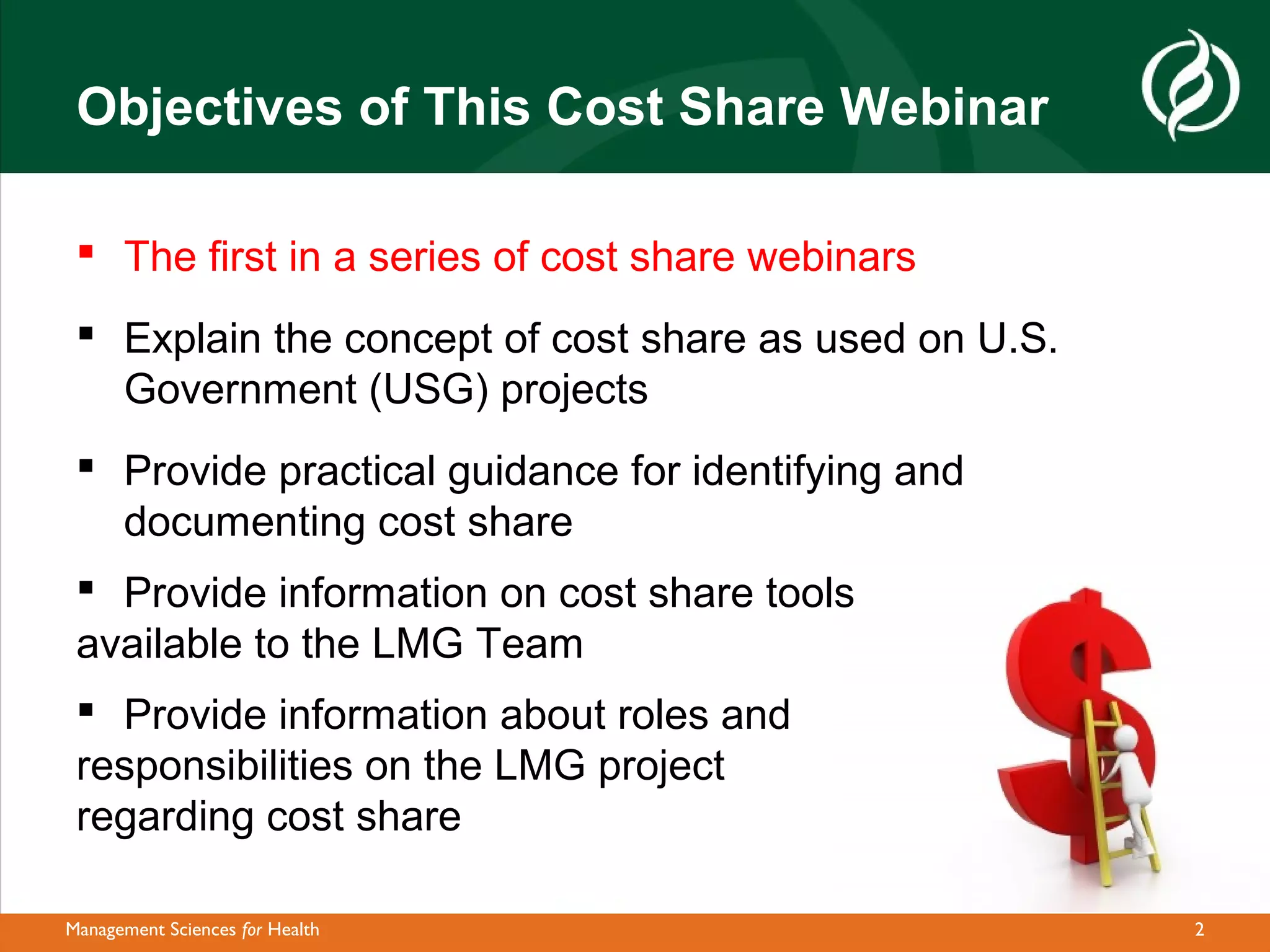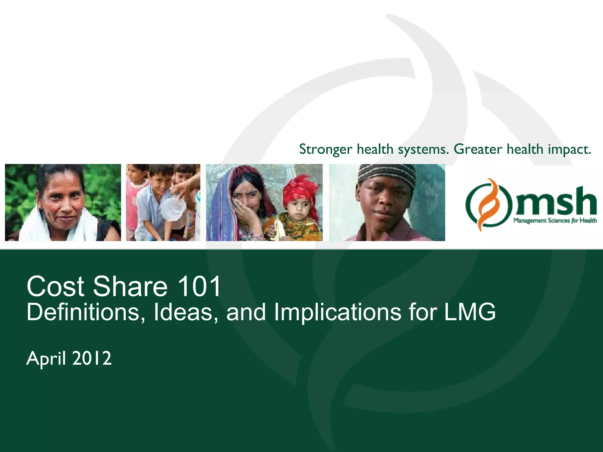 This document provides an overview of cost share requirements for USAID-funded projects. It defines cost share as a portion of project costs not borne by the US government. It outlines rules for cost share contributions and provides examples of acceptable cash and in-kind contributions. The document emphasizes the importance of thorough documentation for all cost share. Contacts are provided for questions related to identifying, tracking, and documenting cost share for the LMG project.