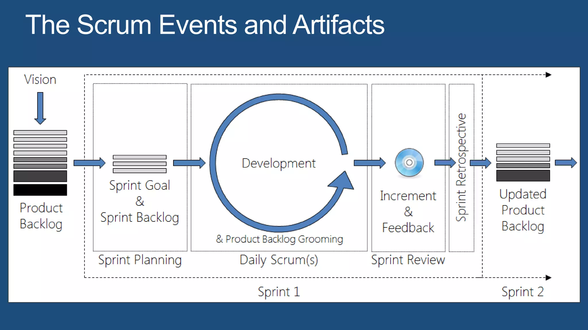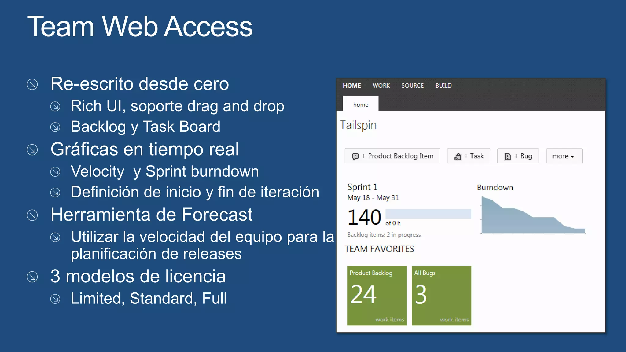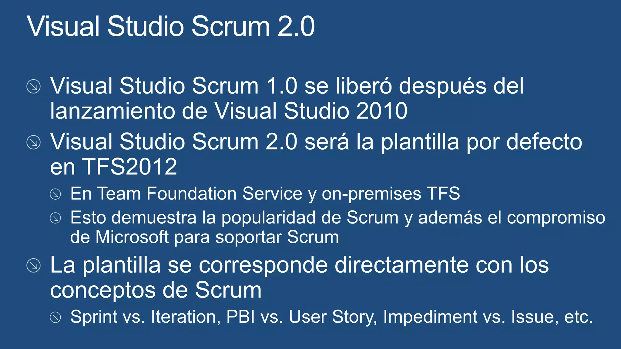This document provides an overview mapping of common Scrum concepts to equivalent concepts in Visual Studio and Team Foundation Server. It outlines how teams can structure their work using work item types like Product Backlog Items, tasks, impediments and test cases. It also shows how tools like queries, reports and the team portal on Team Web Access can be used to plan iterations, track progress and support ceremonies like sprint planning and retrospectives.