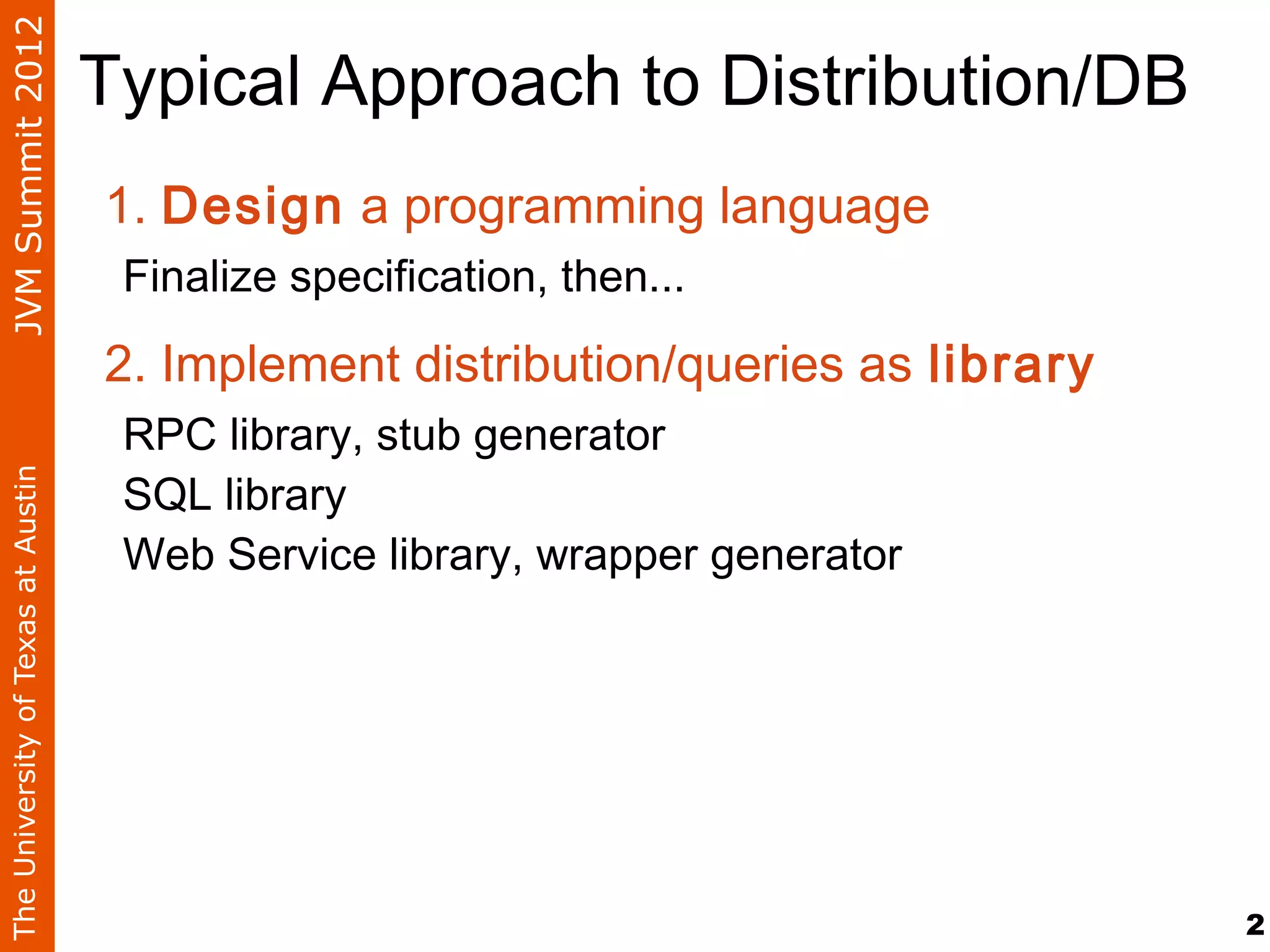 2. With the typical approach, distribution and queries are implemented as libraries after the programming language is finalized, but this leads to rejected solutions like CORBA and DCOM.
