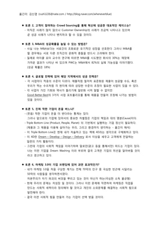 - 사실 나는 M&A보다는 서로간의 조화로운 유기적인 성장을 선호한다 그러나 M&A를