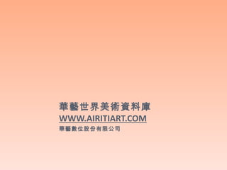 華藝數位股份有限公司於2000年建立的「世界美術資料庫」,收錄了超過650位藝術家及63,000張圖片,涵蓋西洋、台灣、大陸及兒童四大主題。該資料庫曾獲多項獎項並成為台北市各級學校的指定使用平台,提供簡易與進階搜尋功能,以及藝術家個人介紹和作品欣賞等多樣功能。尤其「世界兒童美術」部分,收錄了超過1500張來自全球的兒童美術創作,為美術教育提供優良教材。