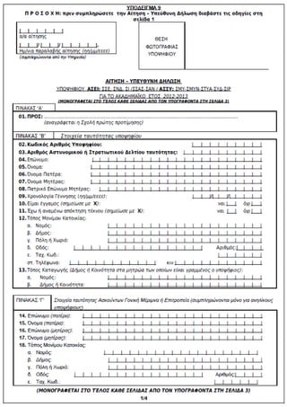 α. Να υποβάλλεις "Αίτηση – Υπεύθυνη Δήλωση" για τη Σχολή