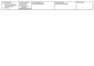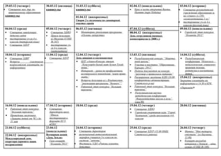 Документ представляет собой расписание мероприятий с 29 марта по 2 мая 2012 года, включая совещания, конкурсы и тестирования для учащихся. Основное внимание уделяется образовательным мероприятиям, культурным событиям и праздникам. В расписании также указаны даты каникул и встречи с делегациями.