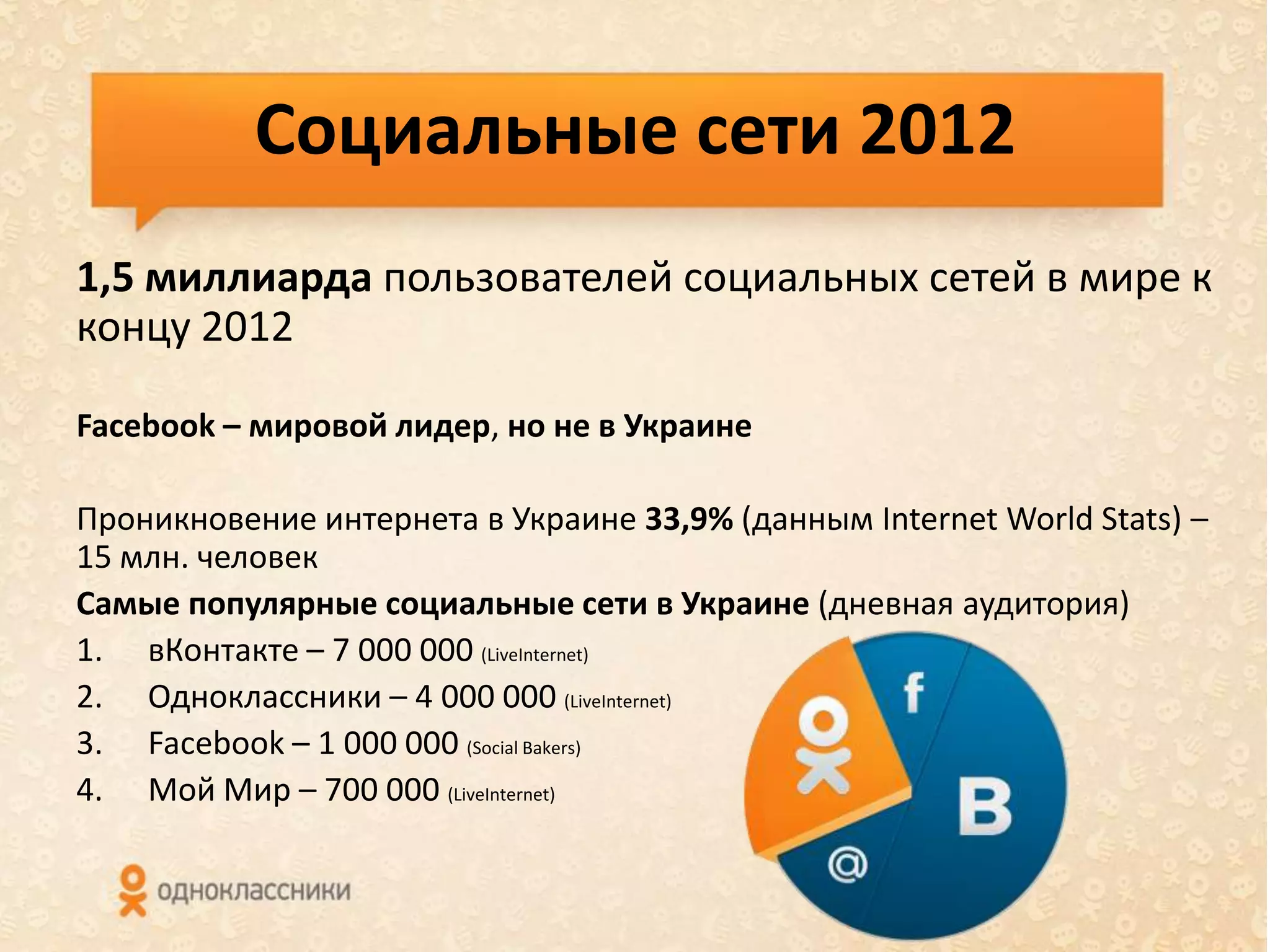 Документ анализирует влияние социальных сетей, особенно 'Одноклассники', на бизнес в Украине и предоставляет данные о росте пользователей и демографии. 'Одноклассники' занимает второе место по популярности с 4 миллионами пользователей, а также демонстрирует высокую вовлеченность и доходы от рекламы. В будущем акцент будет сделан на эмоциональное взаимодействие с пользователями и развитие социальных коммерций.