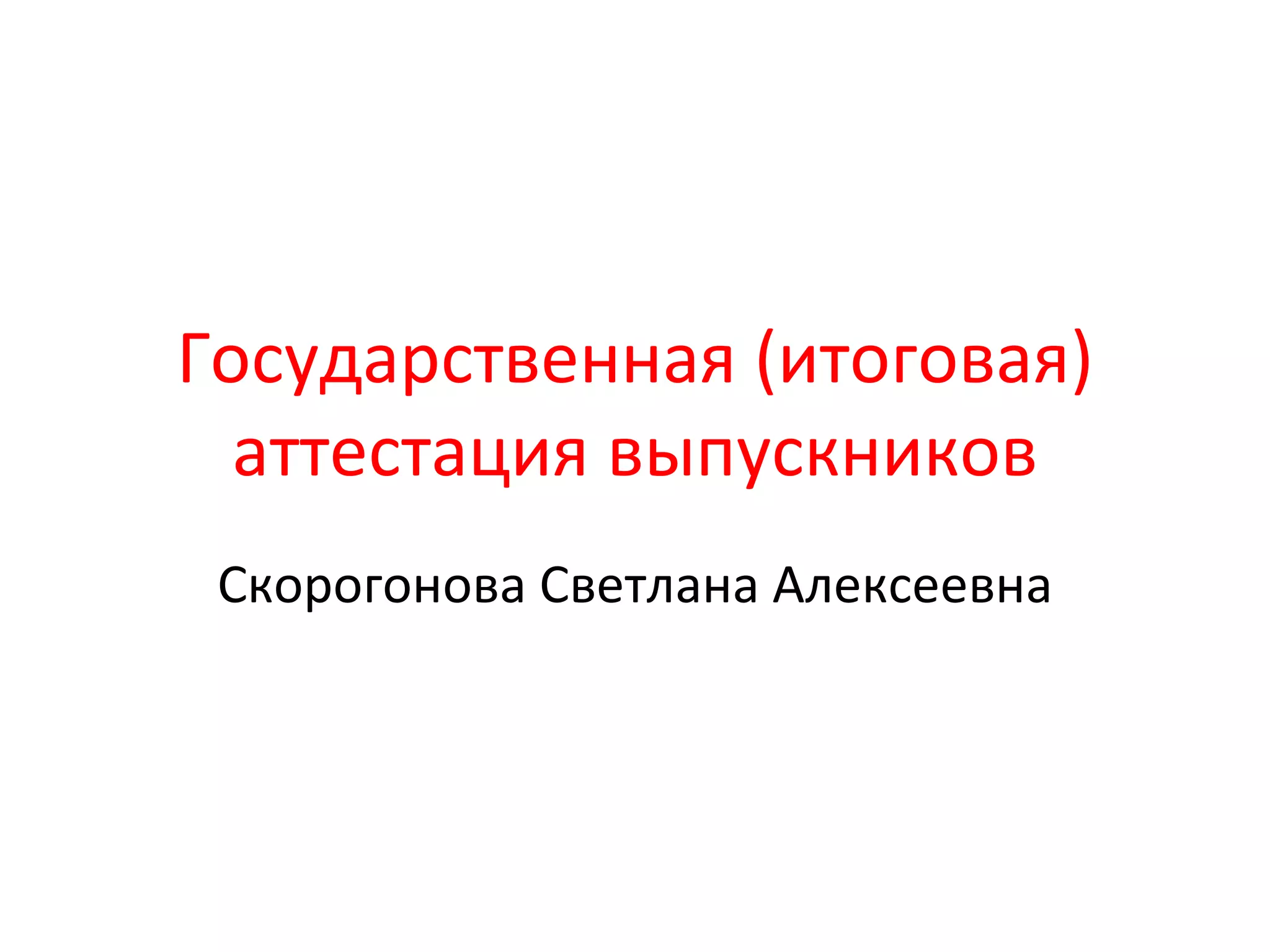Документ описывает порядок государственной итоговой аттестации выпускников в России, включая формы проведения аттестации, требования к участникам и условия для различных категорий обучающихся. Основной формой аттестации является единый государственный экзамен (ЕГЭ), который служит объективной оценкой качества подготовки и используется как для государственных экзаменов, так и для приема в образовательные учреждения. Также документ регулирует процедуры допуска к аттестации, выдачи свидетельств и специальные условия для обучающихся с ограниченными возможностями здоровья.