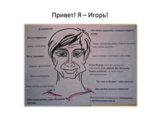 Документ описывает курс по дизайн-мышлению и технологии создания инноваций, проведенный в бизнес-инкубаторе ВШЭ в 2012 году. Основное внимание уделяется поиску и объединению активных людей для организации значимых социальных событий, а также созданию карты социальной активности как инструмента дляNetworking. Проект предлагает два решения – «умные встречаторы» для поиска партнеров и резюме социальной активности, что способствует развитию социальных инициатив и предпринимательства.