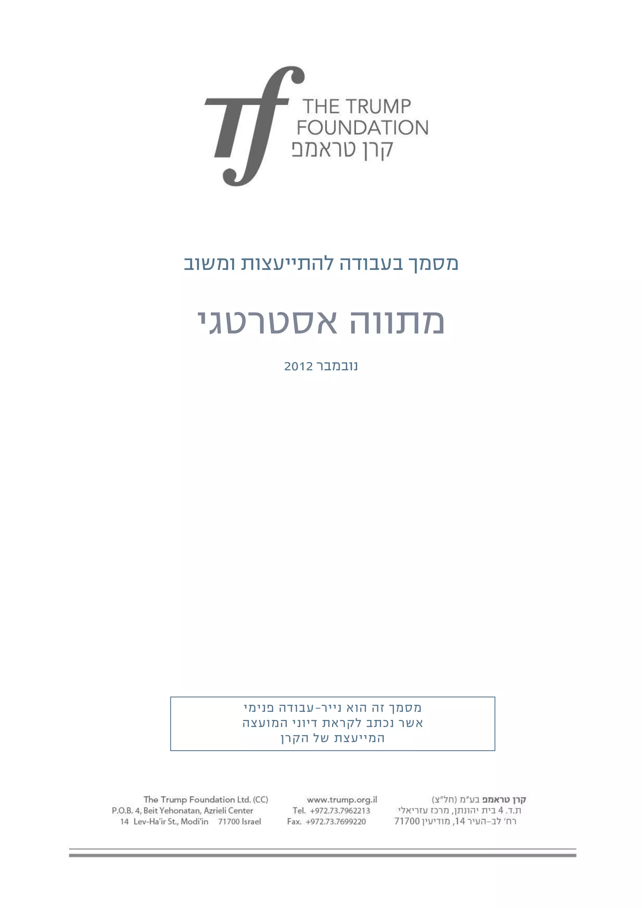 מסמך זה הוא נייר עבודה אשר נכתב בתום השנה הראשונה לפעולתה של קרן טראמפ והדברים