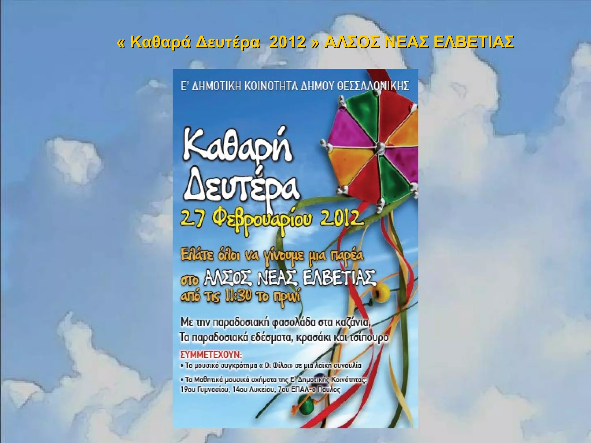 « Καθαρά Δευτέρα2012 » ΑΛΣΟΣ ΝΕΑΣ ΕΛΒΕΤΙΑΣ« Καθαρά Δευτέρα 2012 » ΑΛΣΟΣ ΝΕΑΣ ΕΛΒΕΤΙΑΣ