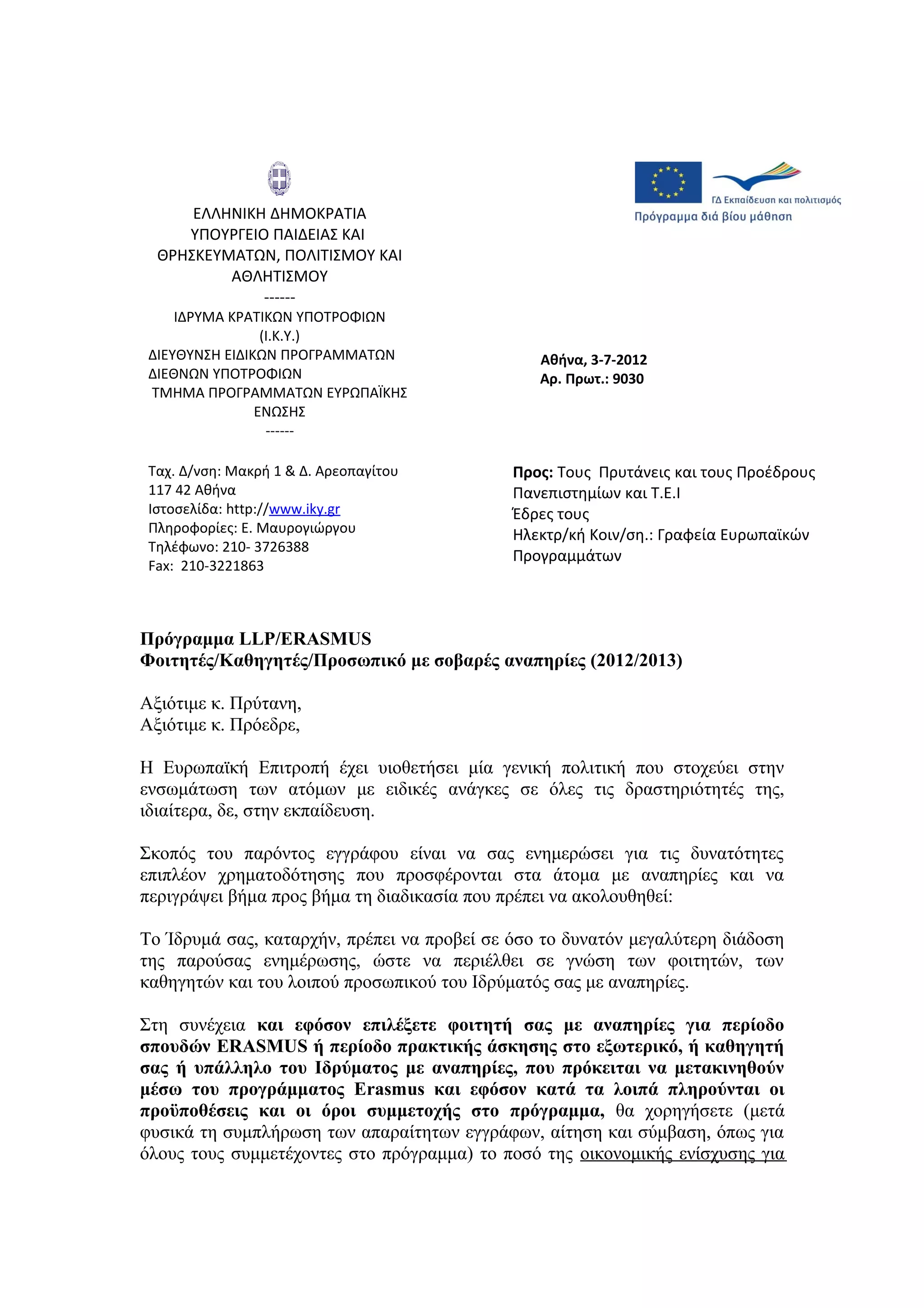 ΔΙΕΥΘΥΝΣΗ ΕΙΔΙΚΩΝ ΠΡΟΓΡΑΜΜΑΤΩΝ Αθήνα, 3-7-2012